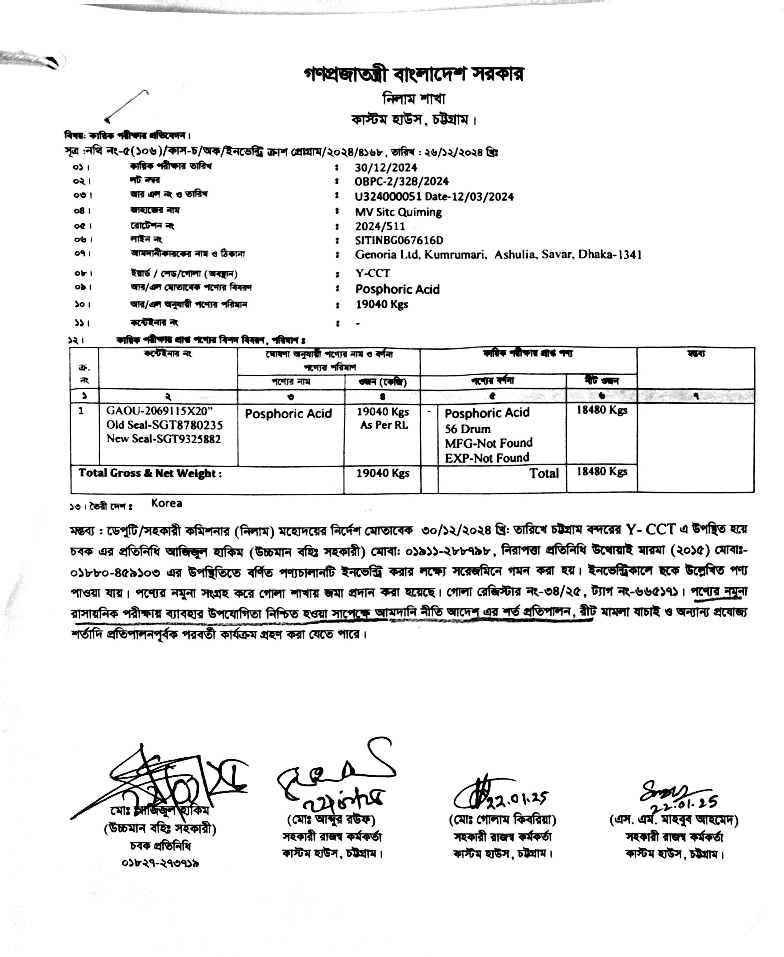 লটের শিরোনাম :Phosphoric Acid(Previous Bid: 0 TK)