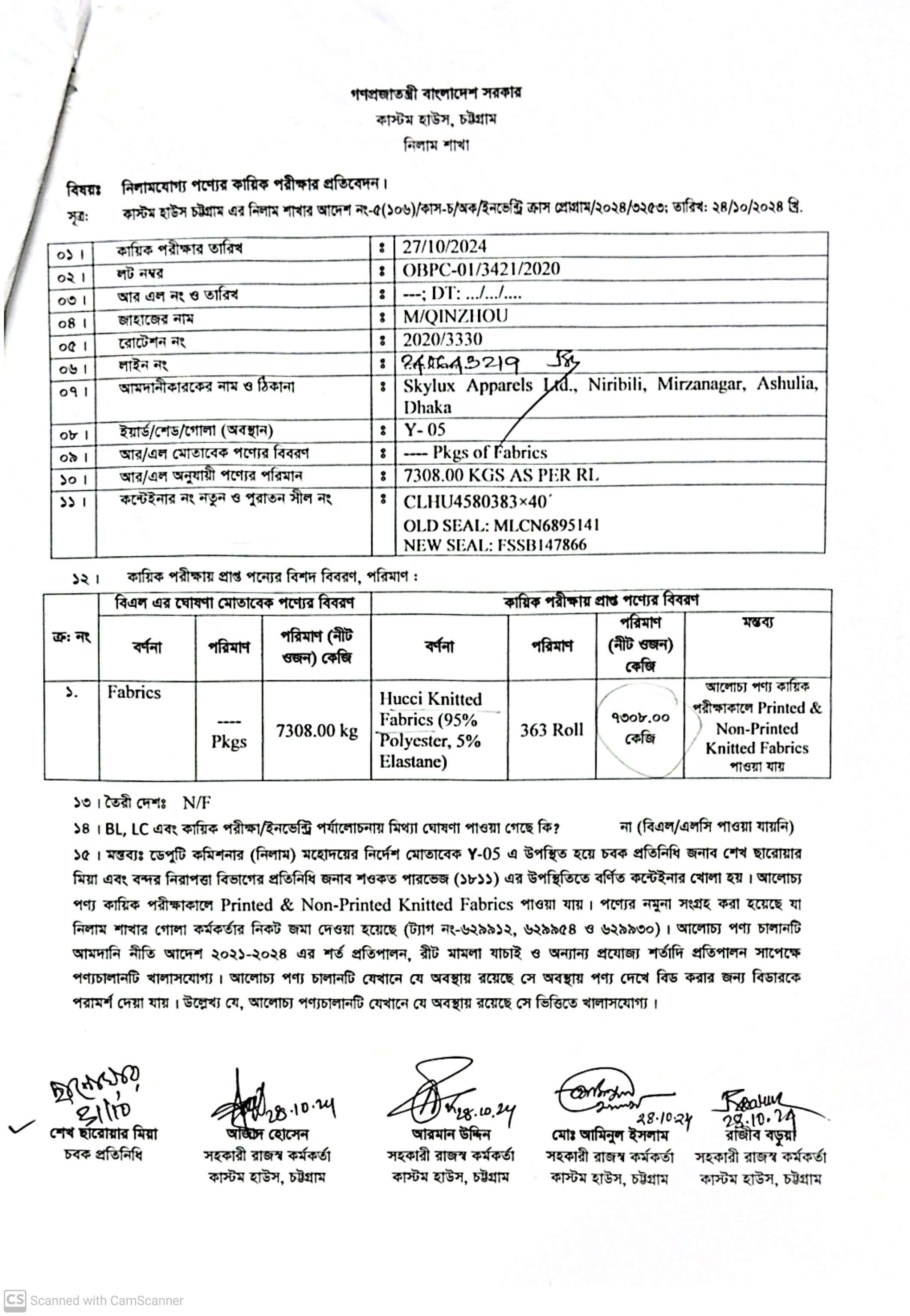 Terms & condition : আমদানি নীতি আদেশ এবং বিদ্যমান অন্যান্য আইন ও বিধি-বিধানের প্রযোজ্য সকল শর্ত পরিপালন এবং প্রযোজ্য ক্ষেত্রে রাসায়নিক পরীক্ষায় পণ্যের সঠিকতা ও ব্যবহার উপযোগিতা থাকা সাপেক্ষে খালাসকালে পণ্যের বর্ণনা এবং ওজন নিশ্চিত করে পণ্য ছাড়যোগ্য হবে। কোন লটভুক্ত পণ্যচালানে মেয়াদ উত্তীর্ণ/ধ্বসংযোগ্য পণ্য অন্তর্ভুক্ত থাকলে, উক্ত পণ্যচালানের ক্ষেত্রে মেয়াদ উত্তীর্ণ/ধ্বসংযোগ্য পণ্য ব্যতীত (প্রযোজ্য ক্ষেত্রে) কেবল মেয়াদযুক্ত/নিলামযোগ্য পণ্যসমূহ বিদ্যমান ও প্রযোজ্য আইন ও বিধি-বিধানের প্রযোজ্য সকল শর্ত পরিপালন সাপেক্ষে পণ্য ছাড়যোগ্য হবে। সার্ভার জটিলতা এড়ানোর জন্য আগ্রহী নিলাম ক্রেতাগণকে সরেজমিন পণ্য দেখে নিলামের নির্ধারিত শেষ তারিখ ও সময়ের (২৭/১১/২০২৫ খ্রি. তারিখ বিকাল ০৪.০০ টা) পূর্বেই বিশেষ ই-নিলামে অংশগ্রহণ করার জন্য অনুরোধ করা যাচ্ছে। কোনরূপ কারণ দর্শানো ব্যতিরেকে কর্তৃপক্ষ যে কোন সময় ও পর্যায়ে যে কোন লট বা সকল লটের নিলাম আংশিক বা সম্পূর্ণ স্থগিত বা বাতিলের অধিকার সংরক্ষণ করেন।