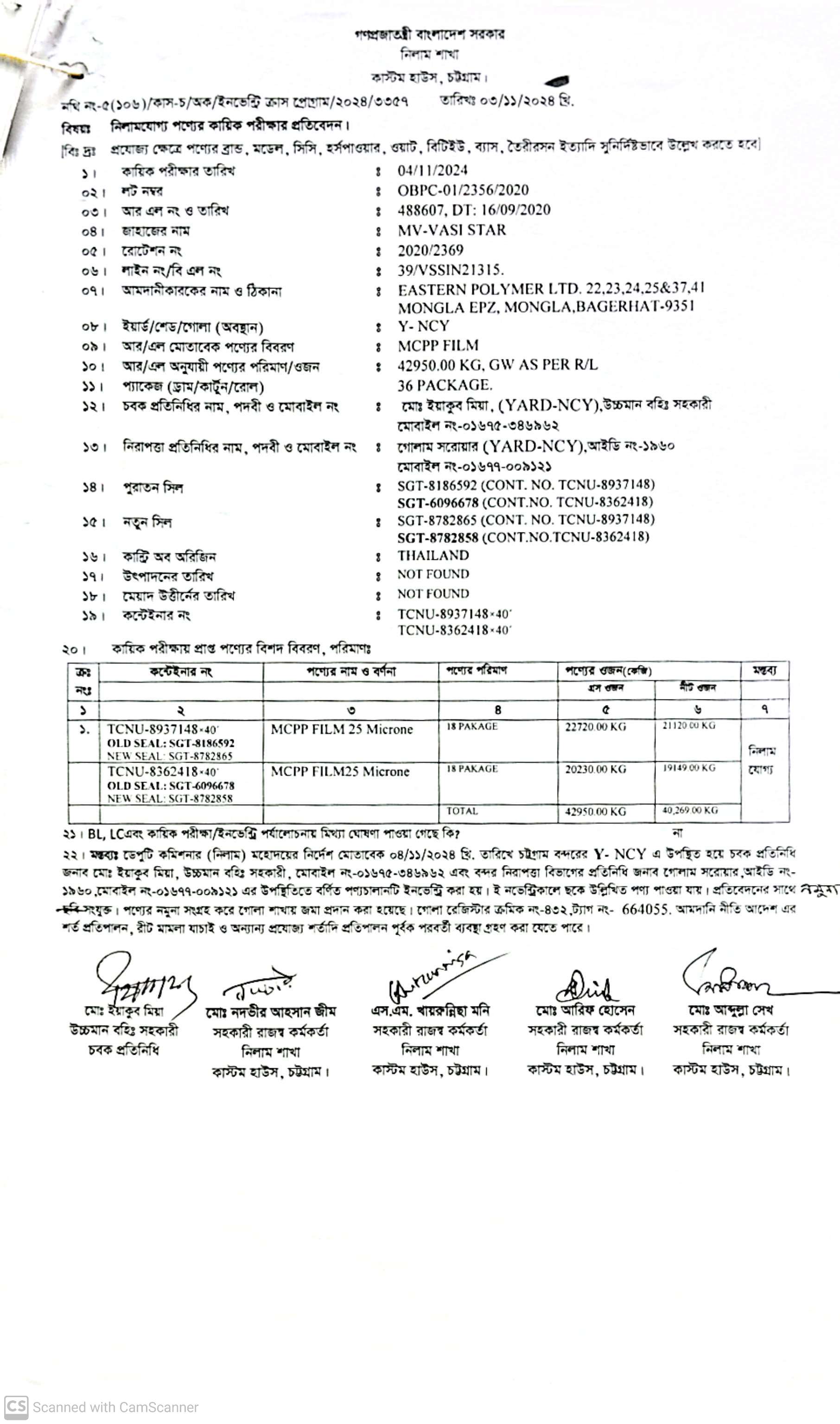 Terms & condition : নিলাম বিজ্ঞপ্তিতে উল্লিখিত সময়ের মধ্যে সেখানে সে অবস্থায় আছে, সে অবস্থায় সরেজমিন পণ্য পরিদর্শন করে নিলামে অংশগ্রহণ করার জন্য আগ্রহী নিলাম ক্রেতাগণকে অনুরোধ করা যাচ্ছে। দরপত্র উন্মুক্ত করার পর নিলামে অংশগ্রহণকারী/বিডার কর্তৃক পণ্য সংক্রান্ত কোন আপত্তি/আবেদন গ্রহণযোগ্য হবে না। আমদানি নীতি আদেশ ২০২১-২০২৪, বিদ্যমান অন্যান্য আইন ও বিধি-বিধানের প্রযোজ্য সকল শর্ত যথাযথ পরিপালনপূর্বক, প্রযোজ্য ক্ষেত্রে রাসায়নিক পরীক্ষার মাধ্যমে নিলামে বিক্রয়যোগ্য পণ্যের সঠিকতা যাচাই ও ব্যবহার উপযোগিতা থাকা সাপেক্ষে এবং খালাসকালে পণ্যের বর্ণনা এবং ওজন নিশ্চিত করে পণ্য ছাড়যোগ্য হবে। কোনরূপ কারণ দর্শানো ব্যতিরেকে কর্তৃপক্ষ যে কোন সময় ও পর্যায়ে যে কোন লট বা সকল লটের নিলাম আংশিক বা সম্পূর্ণ স্থগিত বা বাতিল করার অধিকার সংরক্ষণ করেন।