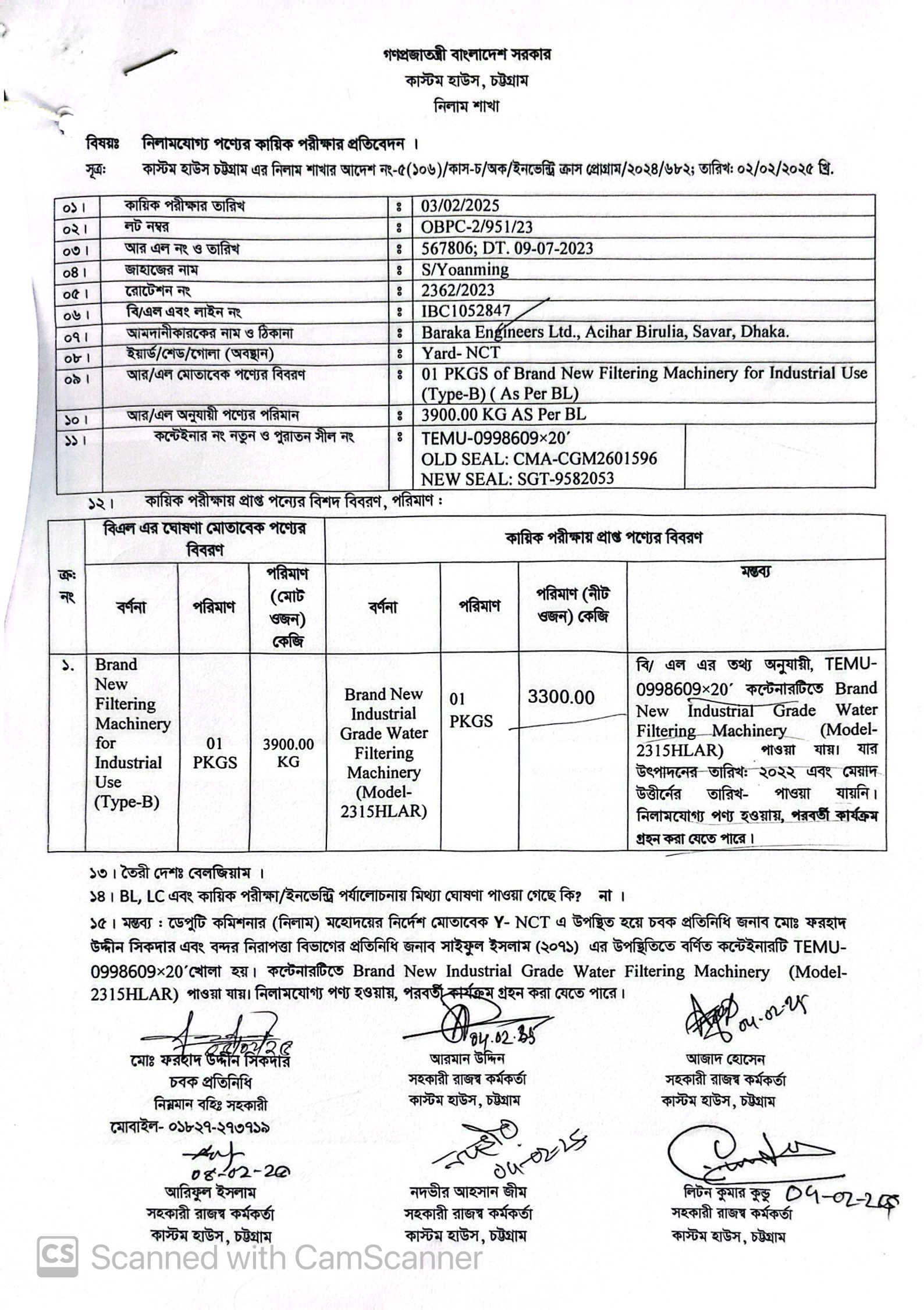 নিলামের পণ্য প্রদর্শনের তারিখ ২০/০৭/২০২৫ থেকে ৩১/০৭/২০২৫