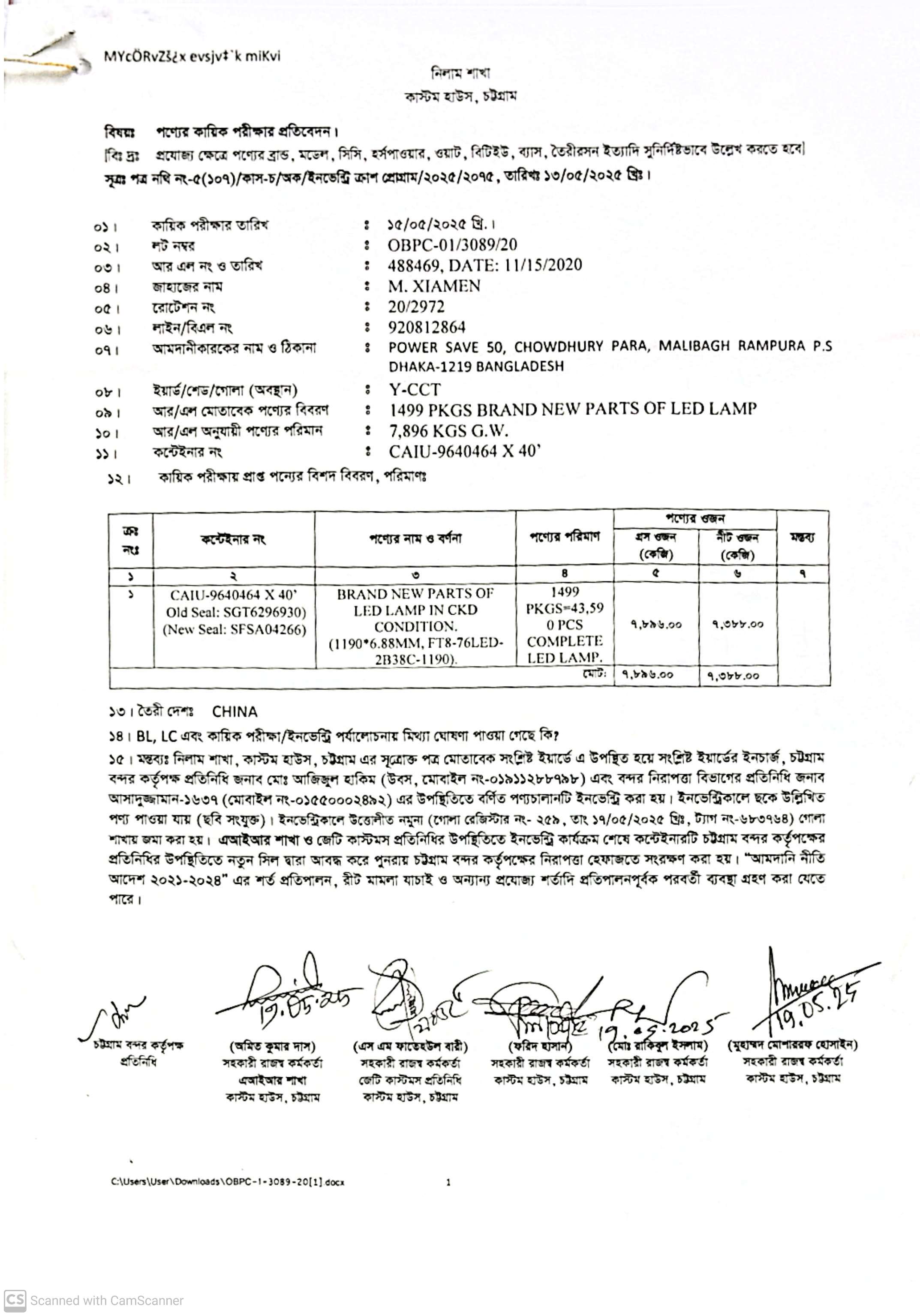 লট নং OBPC-১/৩০৮৯/২০২০/২০২৫/৩০১