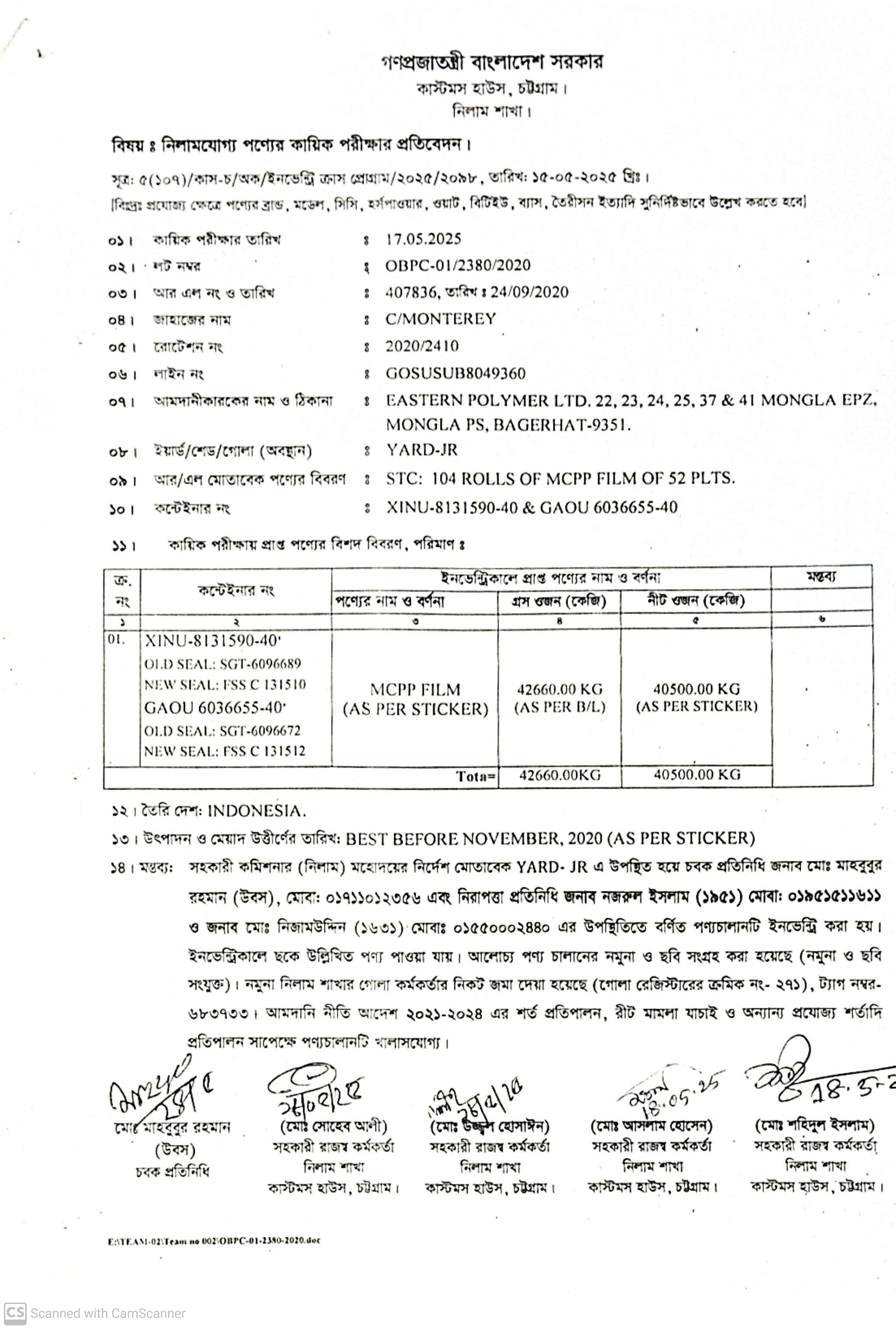 লটের শিরোনাম :MCPP Film (As per sticker)(Previous Bid: 0 TK)