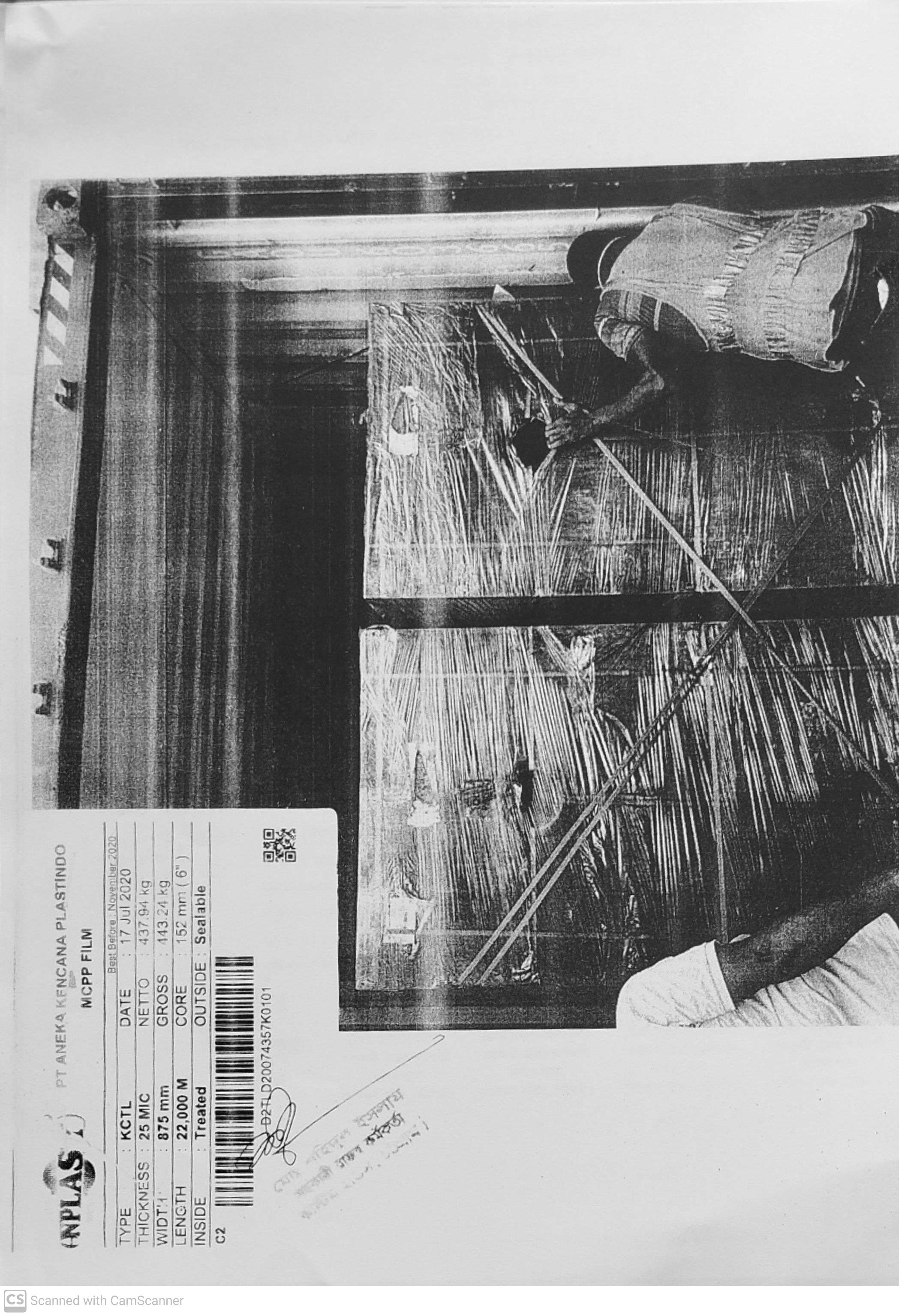 MCPP Film (As per sticker), Best before November, 2020 (As per sticker) |