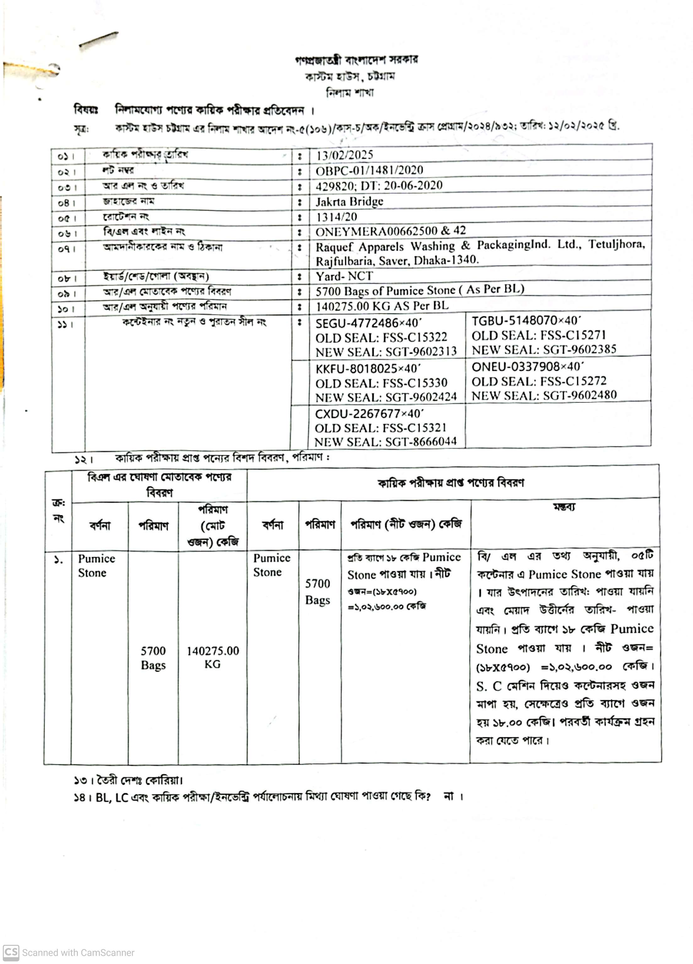 নিলামের পণ্য প্রদর্শনের তারিখ ২০/০৭/২০২৫ থেকে ৩১/০৭/২০২৫
