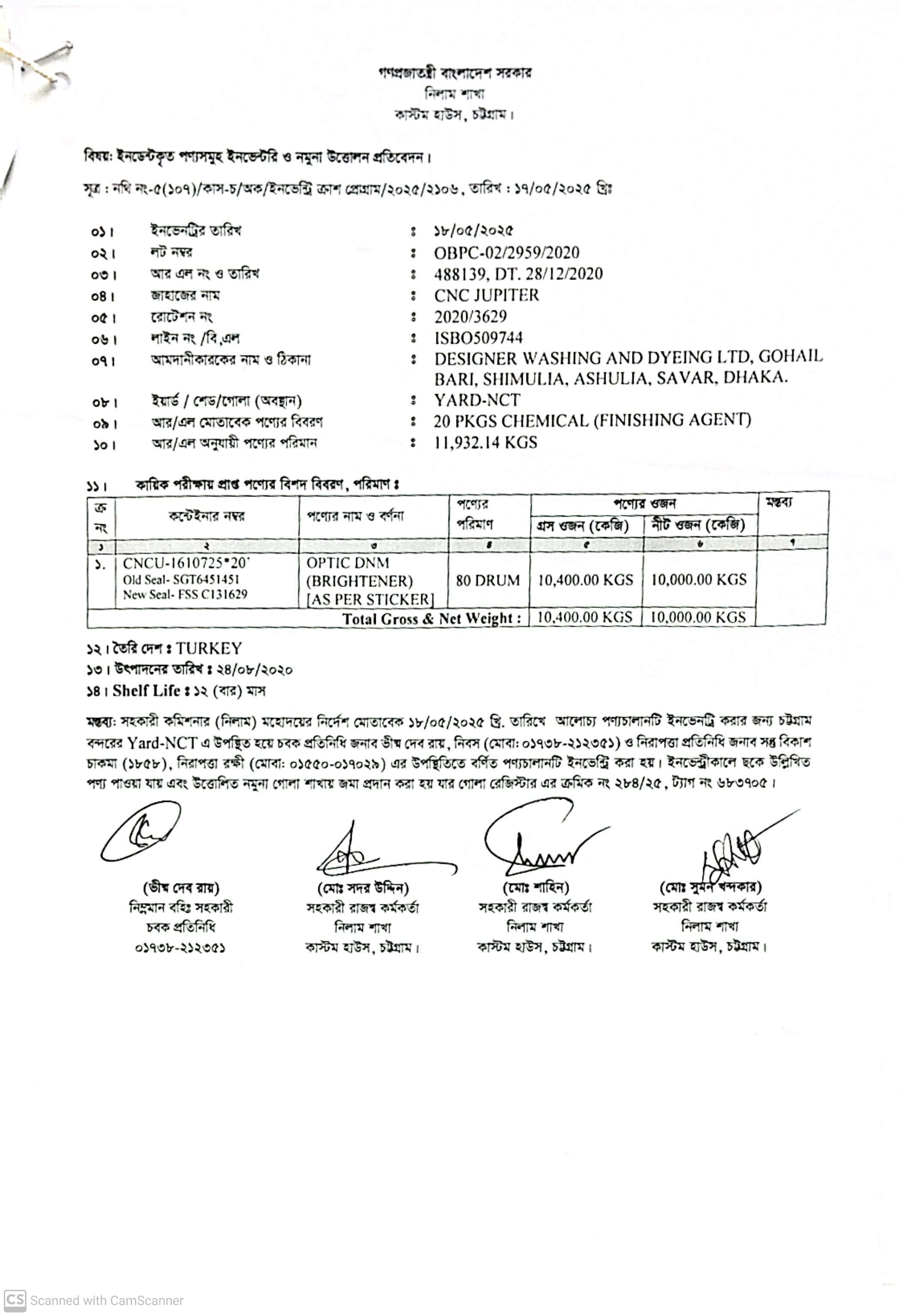 Optic DNM (Brightener) (As per sticker), 80 Drum, C/O: Turkey, Mfg. Date: 24.08.2020, Self-Life: 12 Months |