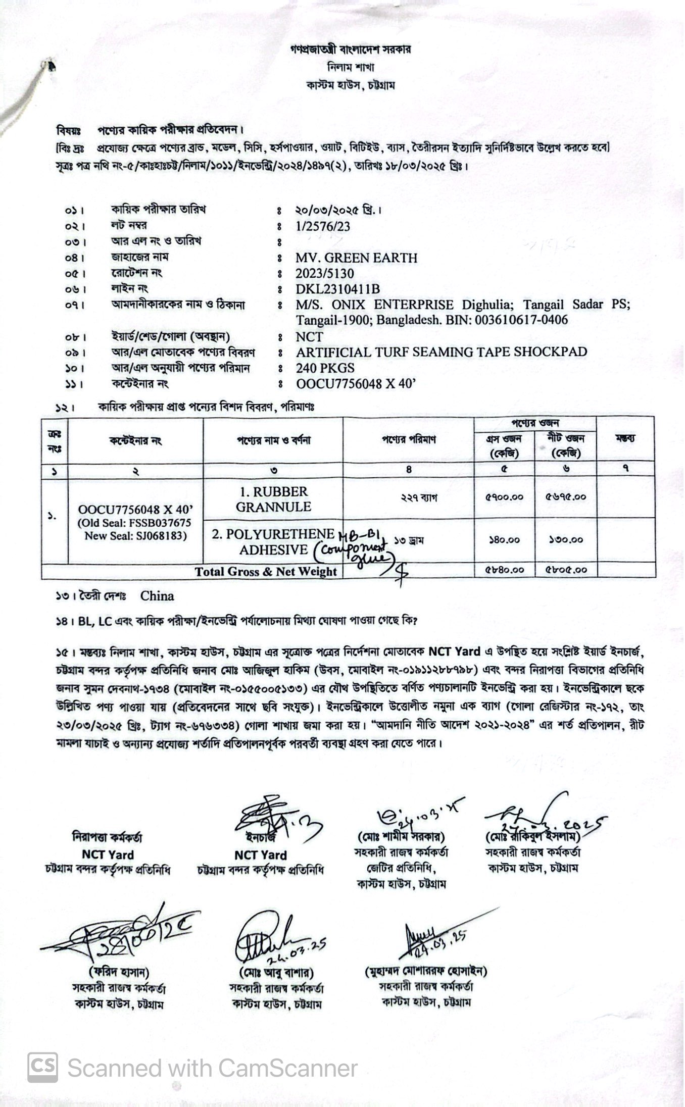 লটের শিরোনাম :Rubber Granule= 5,675.00 Kgs & Polyurethane Adhesive (MB-B1-Component Glue) = 130 Kgs(Previous Bid: 0 TK)