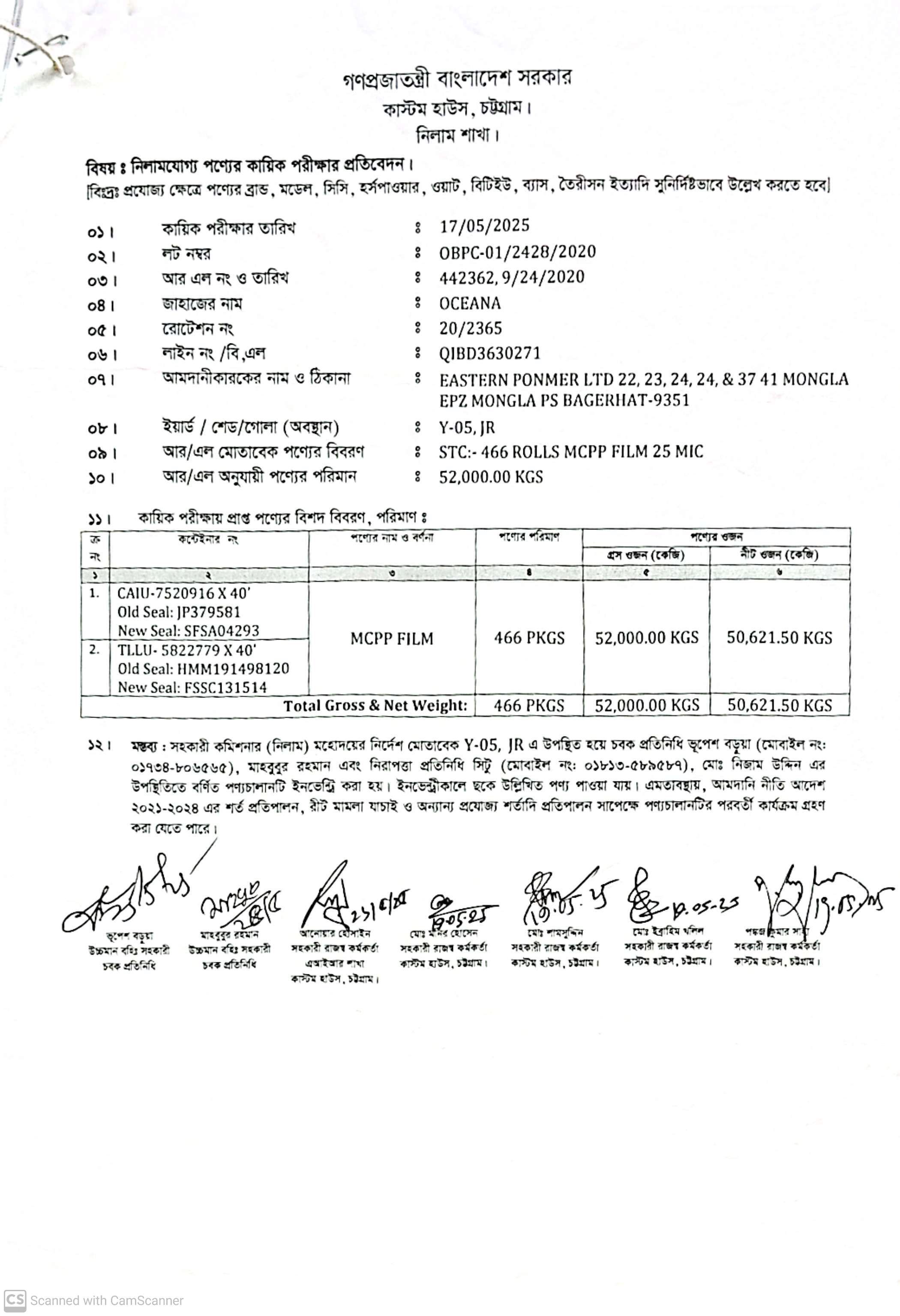 লট নং OBPC-১/২৪২৮/২০২০/২০২৫/৩০১