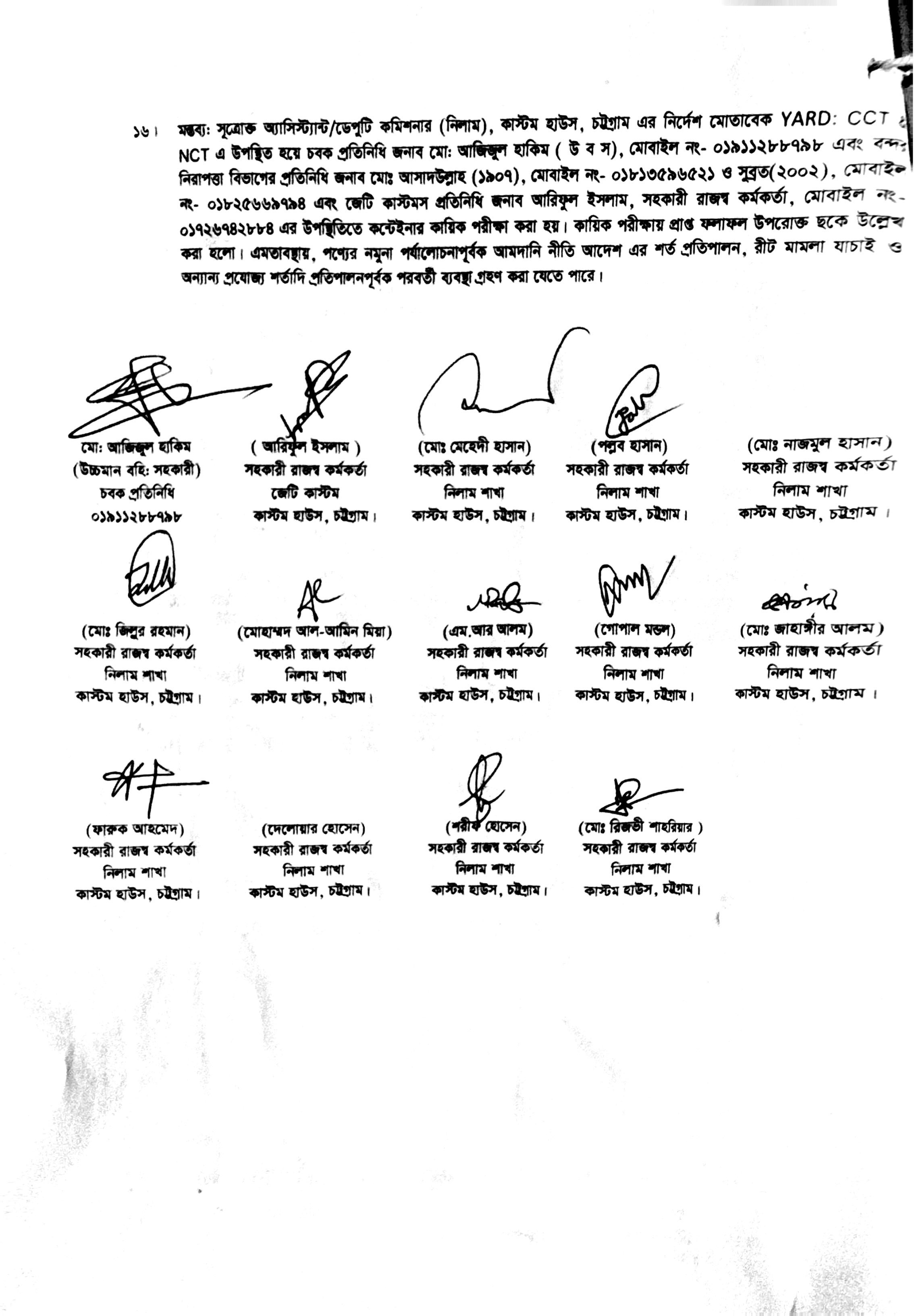 Terms & condition : আমদানি নীতি আদেশ এবং বিদ্যমান অন্যান্য আইন ও বিধি-বিধানের প্রযোজ্য সকল শর্ত পরিপালন সাপেক্ষে পণ্য ছাড়যোগ্য হবে। প্রযোজ্য ক্ষেত্রে রাসায়নিক পরীক্ষায় পণ্যের সঠিকতা ও ব্যবহার উপযোগিতা থাকা সাপেক্ষে পণ্য ছাড়যোগ্য হবে। কোনরূপ কারণ দর্শানো ব্যতিরেকে কর্তৃপক্ষ যে কোন সময় ও পর্যায়ে যে কোন লট বা সকল লটের নিলাম আংশিক বা সম্পূর্ণ স্থগিত বা বাতিল করার অধিকার সংরক্ষণ করেন।