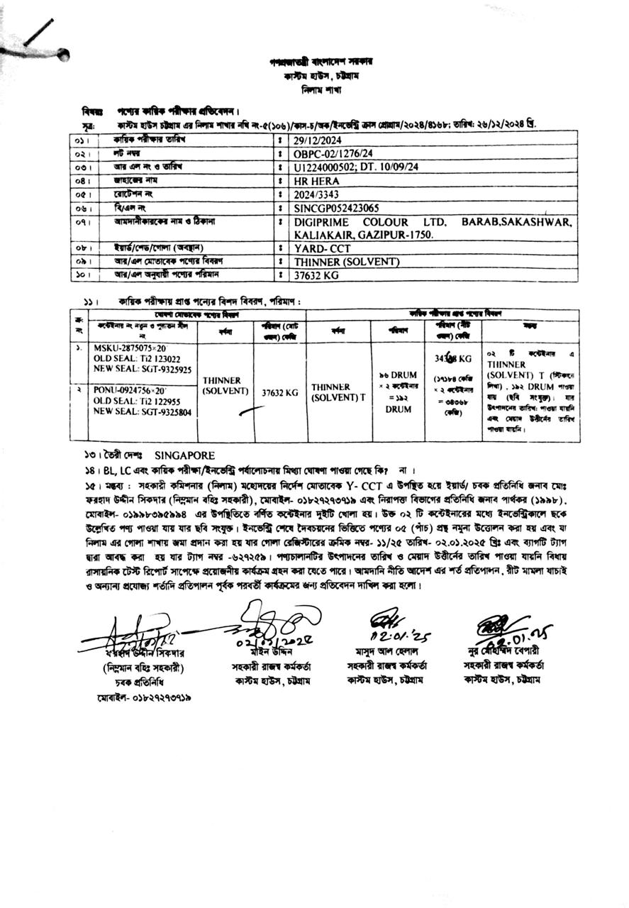 লটের শিরোনাম :Thinner (Solvent)(Previous Bid: 0 TK)