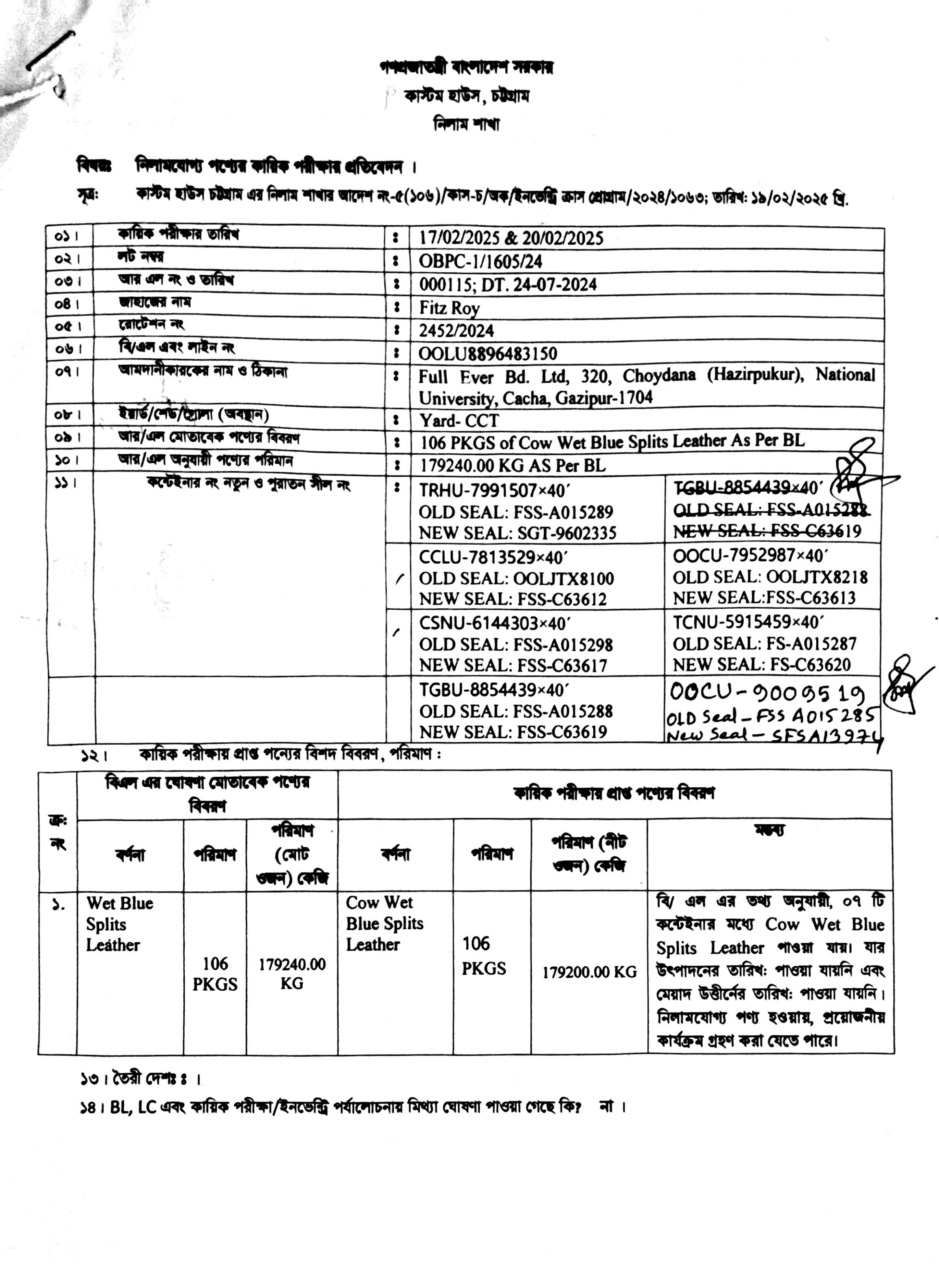 | কন্টেনার/জি আর নং |
