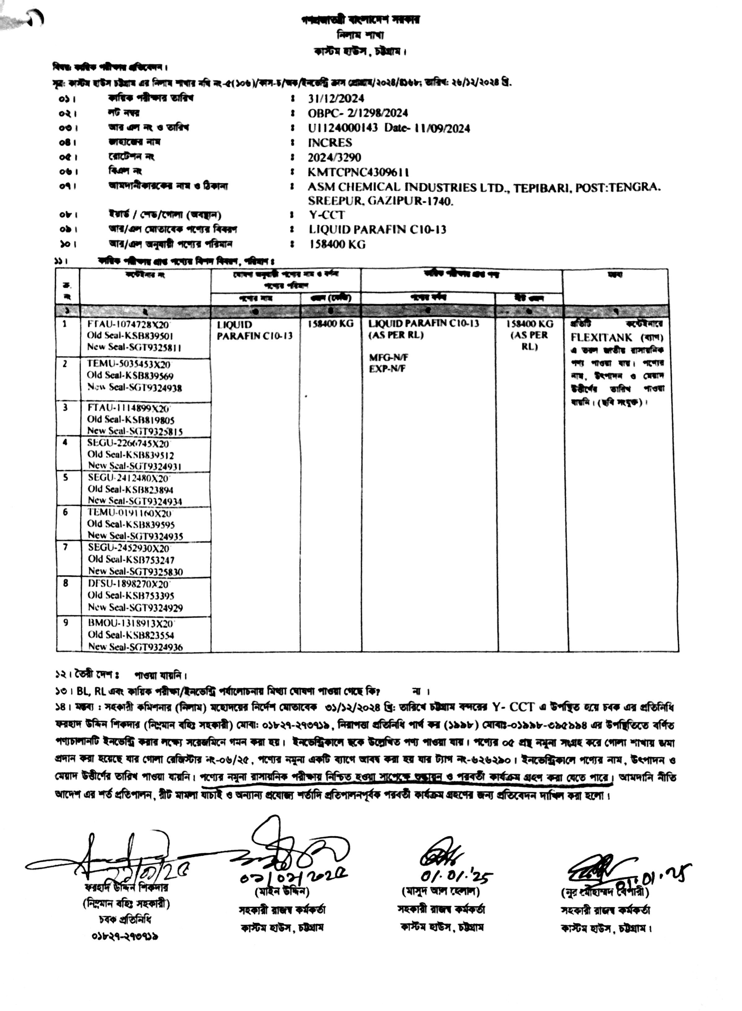 লটের শিরোনাম :Liquid Paraffin C10-13(Previous Bid: 0 TK)