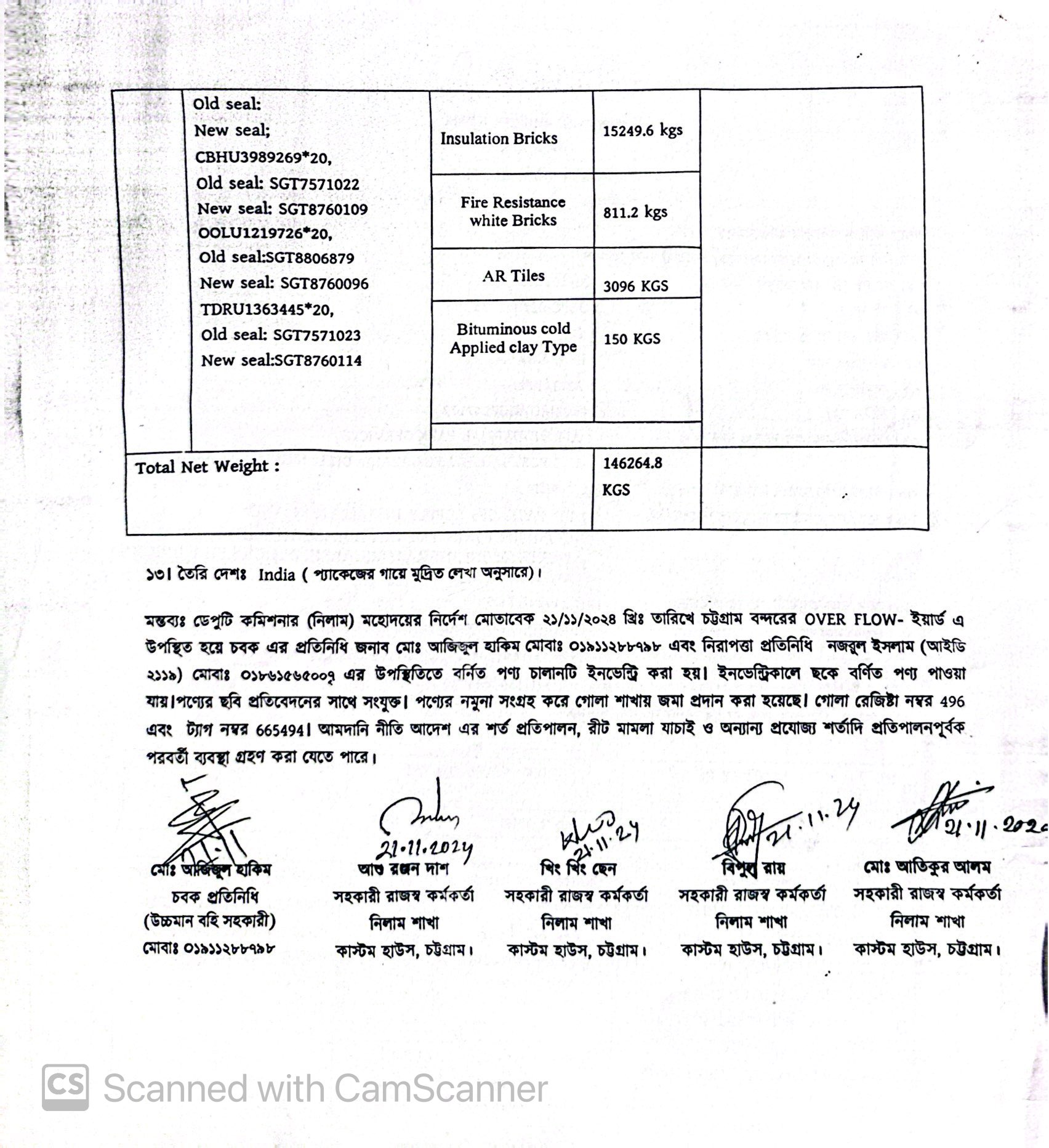 Terms & condition : নিলাম বিজ্ঞপ্তিতে উল্লিখিত সময়ের মধ্যে সেখানে সে অবস্থায় আছে, সে অবস্থায় সরেজমিন পণ্য পরিদর্শন করে নিলামে অংশগ্রহণ করার জন্য আগ্রহী নিলাম ক্রেতাগণকে অনুরোধ করা যাচ্ছে। দরপত্র উন্মুক্ত করার পর নিলামে অংশগ্রহণকারী/বিডার কর্তৃক পণ্য সংক্রান্ত কোন আপত্তি/আবেদন গ্রহণযোগ্য হবে না। আমদানি নীতি আদেশ ২০২১-২০২৪, বিদ্যমান অন্যান্য আইন ও বিধি-বিধানের প্রযোজ্য সকল শর্ত যথাযথ পরিপালনপূর্বক, প্রযোজ্য ক্ষেত্রে রাসায়নিক পরীক্ষার মাধ্যমে নিলামে বিক্রয়যোগ্য পণ্যের সঠিকতা যাচাই ও ব্যবহার উপযোগিতা থাকা সাপেক্ষে এবং খালাসকালে পণ্যের বর্ণনা এবং ওজন নিশ্চিত করে পণ্য ছাড়যোগ্য হবে। কোনরূপ কারণ দর্শানো ব্যতিরেকে কর্তৃপক্ষ যে কোন সময় ও পর্যায়ে যে কোন লট বা সকল লটের নিলাম আংশিক বা সম্পূর্ণ স্থগিত বা বাতিল করার অধিকার সংরক্ষণ করেন।