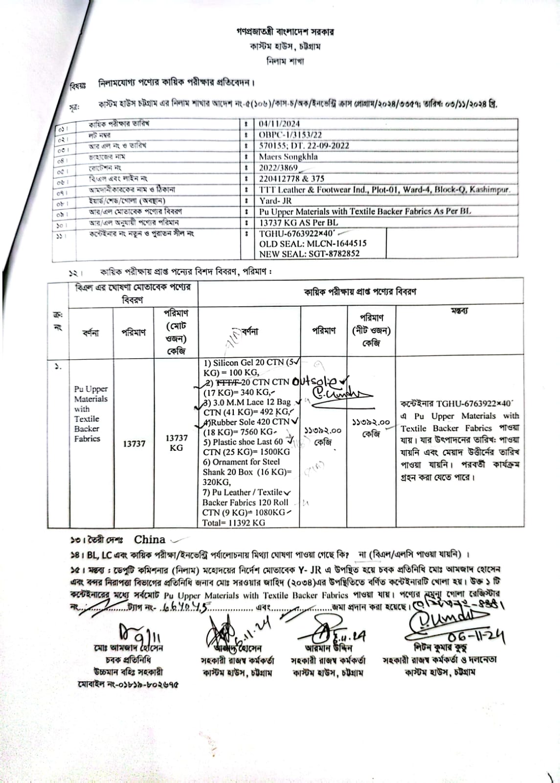 | কন্টেনার/জি আর নং |