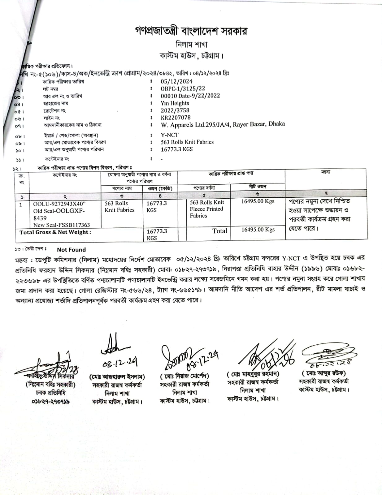 Terms & condition : নিলাম বিজ্ঞপ্তিতে উল্লিখিত সময়ের মধ্যে সেখানে সে অবস্থায় আছে, সে অবস্থায় সরেজমিন পণ্য পরিদর্শন করে নিলামে অংশগ্রহণ করার জন্য আগ্রহী নিলাম ক্রেতাগণকে অনুরোধ করা যাচ্ছে। দরপত্র উন্মুক্ত করার পর নিলামে অংশগ্রহণকারী/বিডার কর্তৃক পণ্য সংক্রান্ত কোন আপত্তি/আবেদন গ্রহণযোগ্য হবে না। আমদানি নীতি আদেশ ২০২১-২০২৪, বিদ্যমান অন্যান্য আইন ও বিধি-বিধানের প্রযোজ্য সকল শর্ত যথাযথ পরিপালনপূর্বক, প্রযোজ্য ক্ষেত্রে রাসায়নিক পরীক্ষার মাধ্যমে নিলামে বিক্রয়যোগ্য পণ্যের সঠিকতা যাচাই ও ব্যবহার উপযোগিতা থাকা সাপেক্ষে এবং খালাসকালে পণ্যের বর্ণনা এবং ওজন নিশ্চিত করে পণ্য ছাড়যোগ্য হবে। কোনরূপ কারণ দর্শানো ব্যতিরেকে কর্তৃপক্ষ যে কোন সময় ও পর্যায়ে যে কোন লট বা সকল লটের নিলাম আংশিক বা সম্পূর্ণ স্থগিত বা বাতিল করার অধিকার সংরক্ষণ করেন।