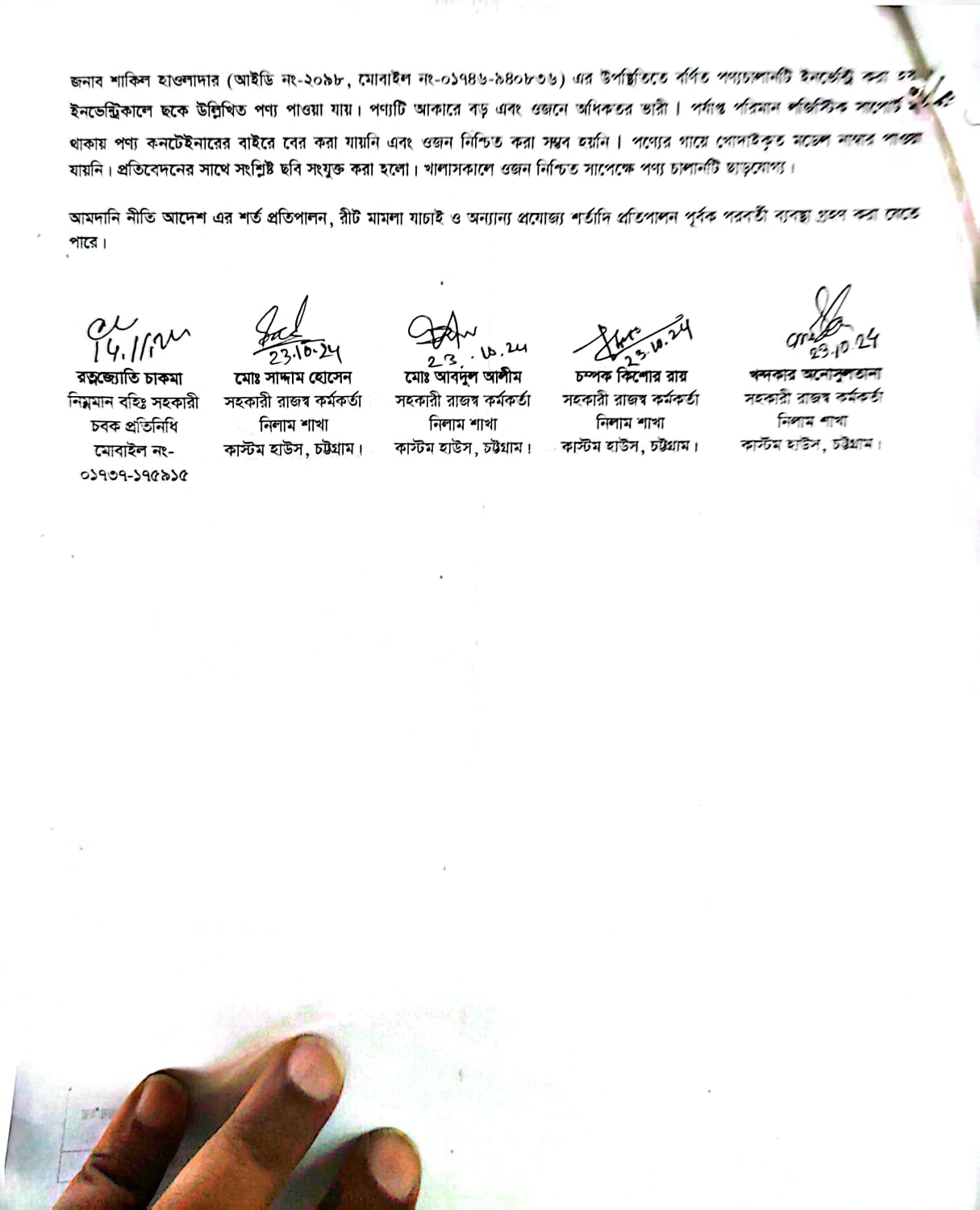 | মোবাইল নম্বর :01926960955 |