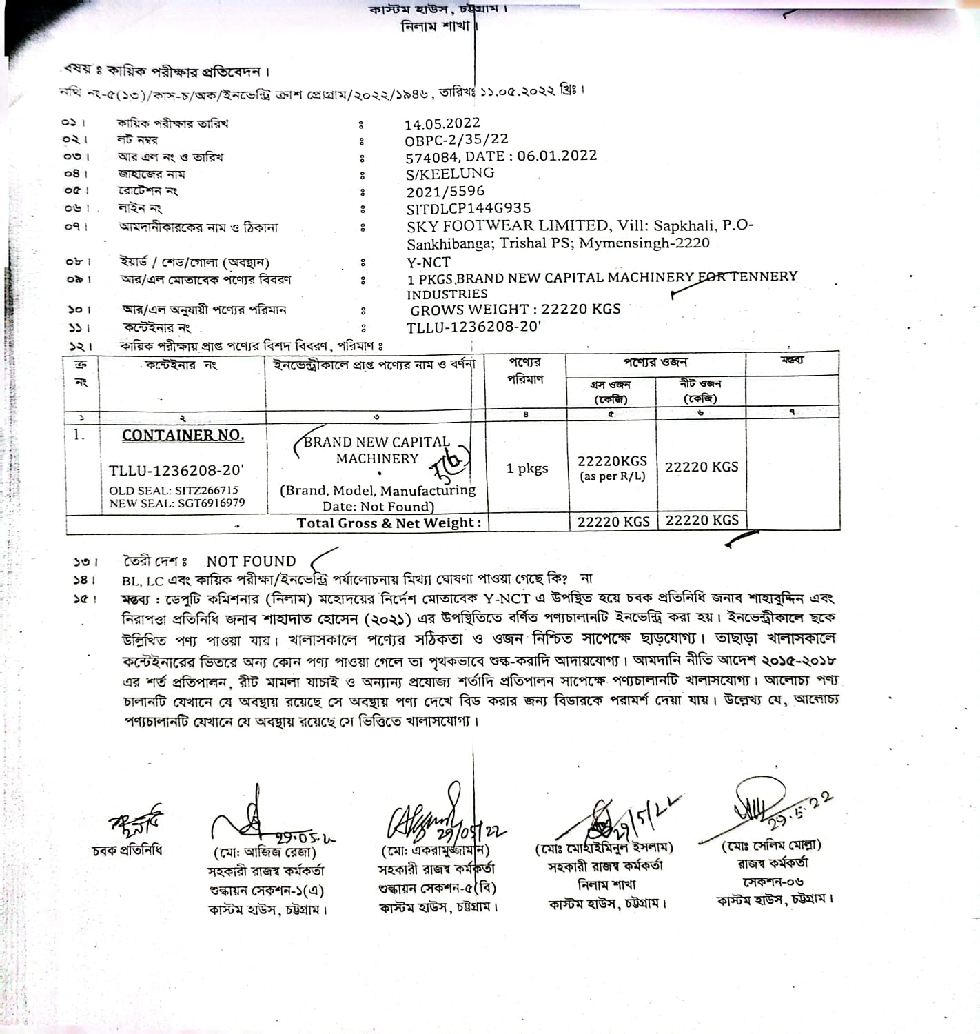 | কন্টেনার/জি আর নং |