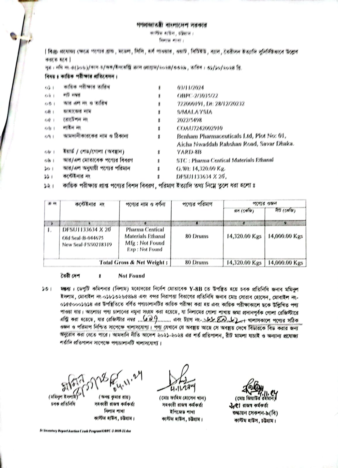 লটের শিরোনাম :Pharma Centical Materials Ethanal,(Previous Bid: 0 TK)