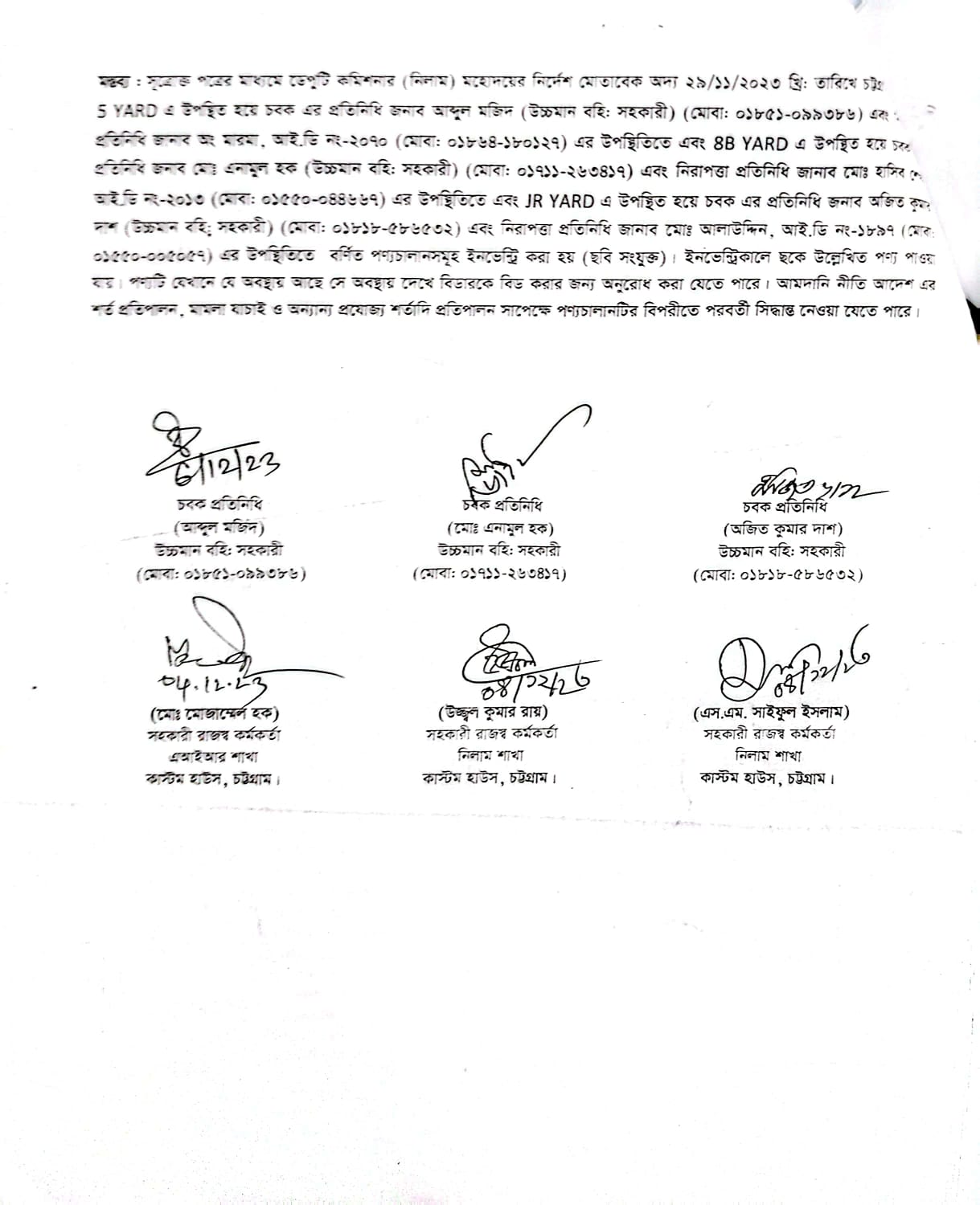 Terms & condition : নিলাম বিজ্ঞপ্তিতে উল্লিখিত সময়ের মধ্যে সেখানে সে অবস্থায় আছে, সে অবস্থায় সরেজমিন পণ্য পরিদর্শন করে নিলামে অংশগ্রহণ করার জন্য আগ্রহী নিলাম ক্রেতাগণকে অনুরোধ করা যাচ্ছে। দরপত্র উন্মুক্ত করার পর নিলামে অংশগ্রহণকারী/বিডার কর্তৃক পণ্য সংক্রান্ত কোন আপত্তি/আবেদন গ্রহণযোগ্য হবে না। আমদানি নীতি আদেশ ২০২১-২০২৪, বিদ্যমান অন্যান্য আইন ও বিধি-বিধানের প্রযোজ্য সকল শর্ত যথাযথ পরিপালনপূর্বক, প্রযোজ্য ক্ষেত্রে রাসায়নিক পরীক্ষার মাধ্যমে নিলামে বিক্রয়যোগ্য পণ্যের সঠিকতা যাচাই ও ব্যবহার উপযোগিতা থাকা সাপেক্ষে এবং খালাসকালে পণ্যের বর্ণনা এবং ওজন নিশ্চিত করে পণ্য ছাড়যোগ্য হবে। কোনরূপ কারণ দর্শানো ব্যতিরেকে কর্তৃপক্ষ যে কোন সময় ও পর্যায়ে যে কোন লট বা সকল লটের নিলাম আংশিক বা সম্পূর্ণ স্থগিত বা বাতিল করার অধিকার সংরক্ষণ করেন।