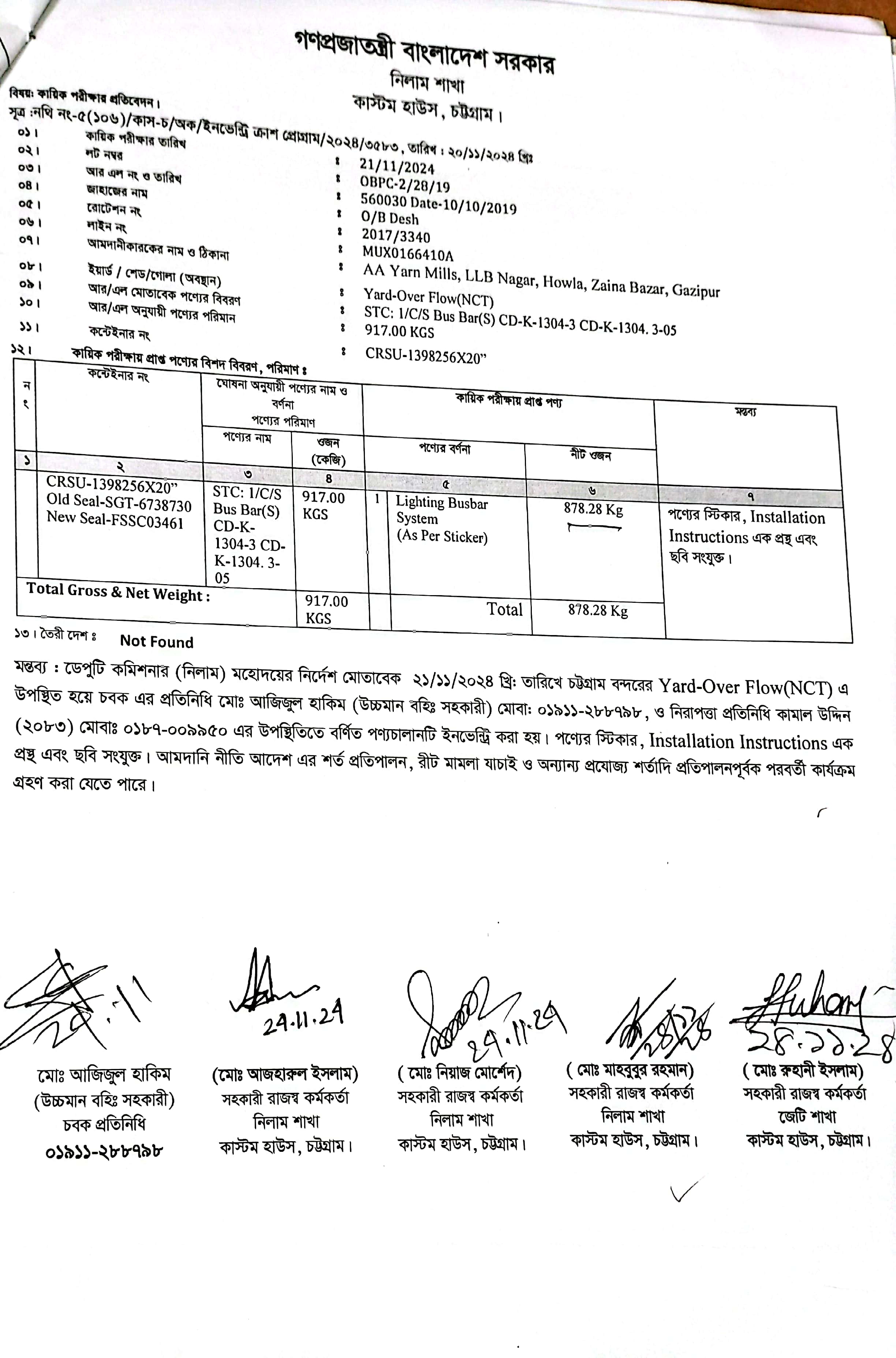 Terms & condition : নিলাম বিজ্ঞপ্তিতে উল্লিখিত সময়ের মধ্যে সেখানে সে অবস্থায় আছে, সে অবস্থায় সরেজমিন পণ্য পরিদর্শন করে নিলামে অংশগ্রহণ করার জন্য আগ্রহী নিলাম ক্রেতাগণকে অনুরোধ করা যাচ্ছে। দরপত্র উন্মুক্ত করার পর নিলামে অংশগ্রহণকারী/বিডার কর্তৃক পণ্য সংক্রান্ত কোন আপত্তি/আবেদন গ্রহণযোগ্য হবে না। আমদানি নীতি আদেশ ২০২১-২০২৪, বিদ্যমান অন্যান্য আইন ও বিধি-বিধানের প্রযোজ্য সকল শর্ত যথাযথ পরিপালনপূর্বক, প্রযোজ্য ক্ষেত্রে রাসায়নিক পরীক্ষার মাধ্যমে নিলামে বিক্রয়যোগ্য পণ্যের সঠিকতা যাচাই ও ব্যবহার উপযোগিতা থাকা সাপেক্ষে এবং খালাসকালে পণ্যের বর্ণনা এবং ওজন নিশ্চিত করে পণ্য ছাড়যোগ্য হবে। কোনরূপ কারণ দর্শানো ব্যতিরেকে কর্তৃপক্ষ যে কোন সময় ও পর্যায়ে যে কোন লট বা সকল লটের নিলাম আংশিক বা সম্পূর্ণ স্থগিত বা বাতিল করার অধিকার সংরক্ষণ করেন।