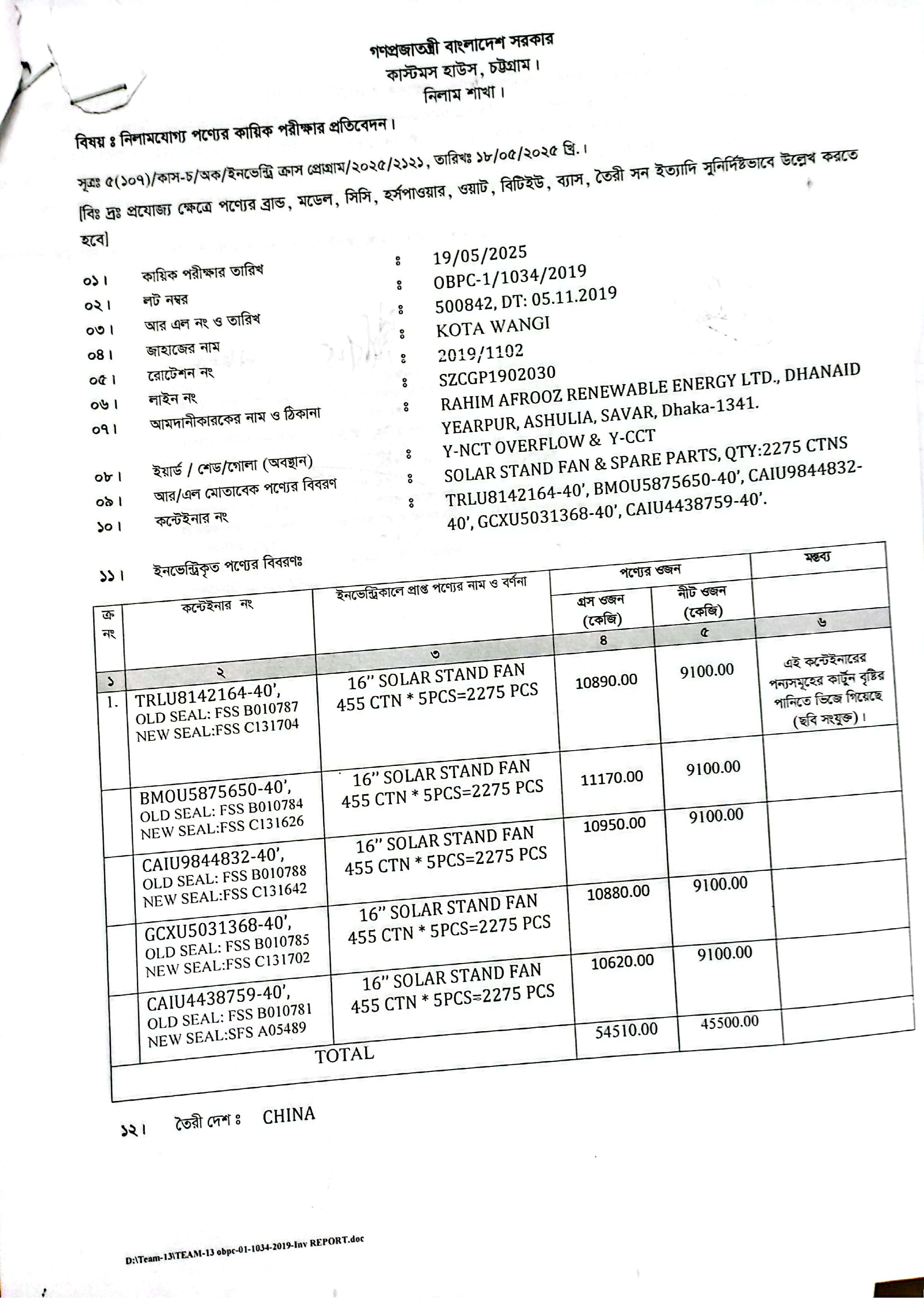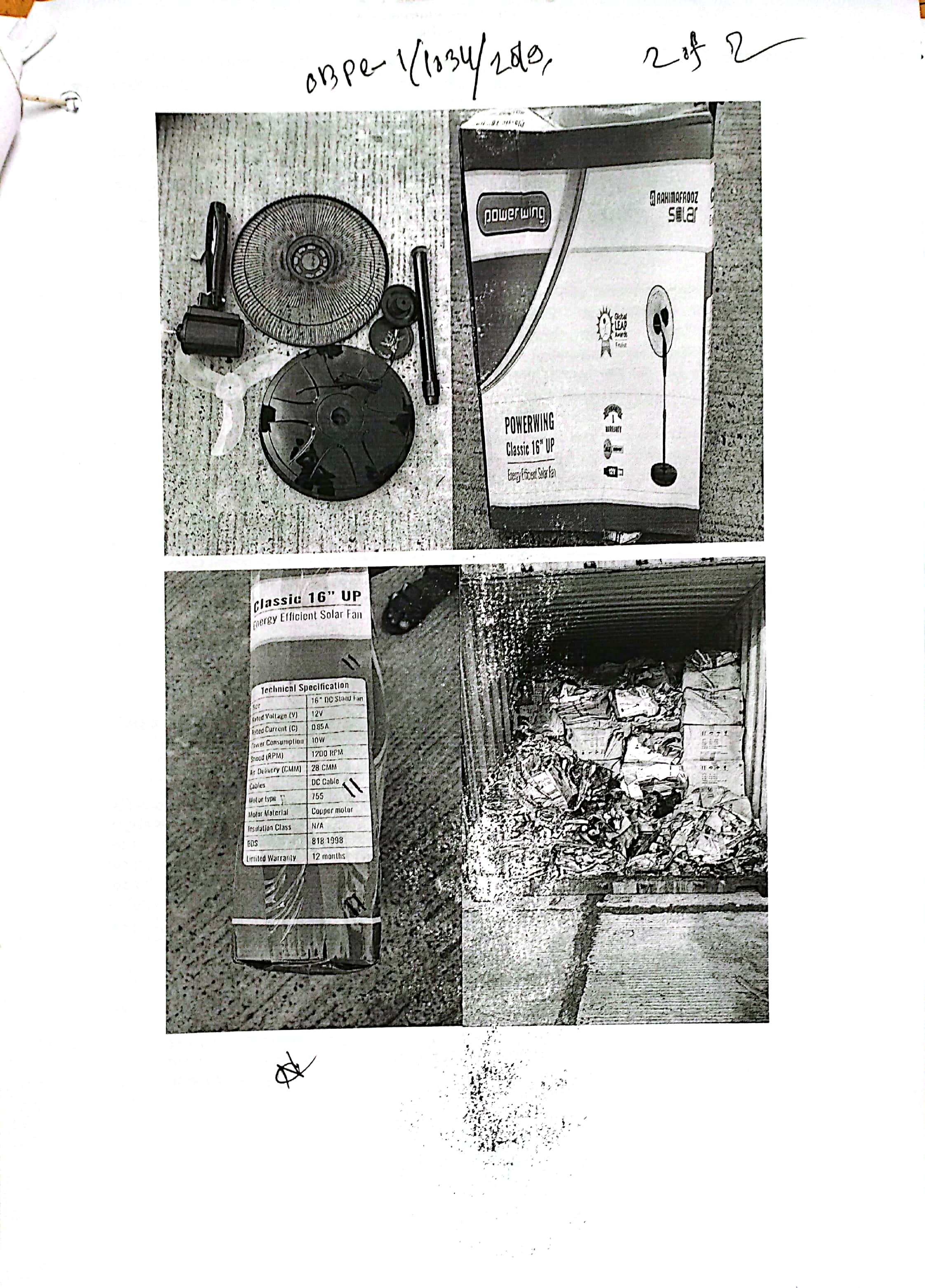 লটের শিরোনাম :16" Solar Stand Fan- 455 ctn *5 pcs * 5 containers= 11,375 Pcs(Previous Bid: 0 TK)
