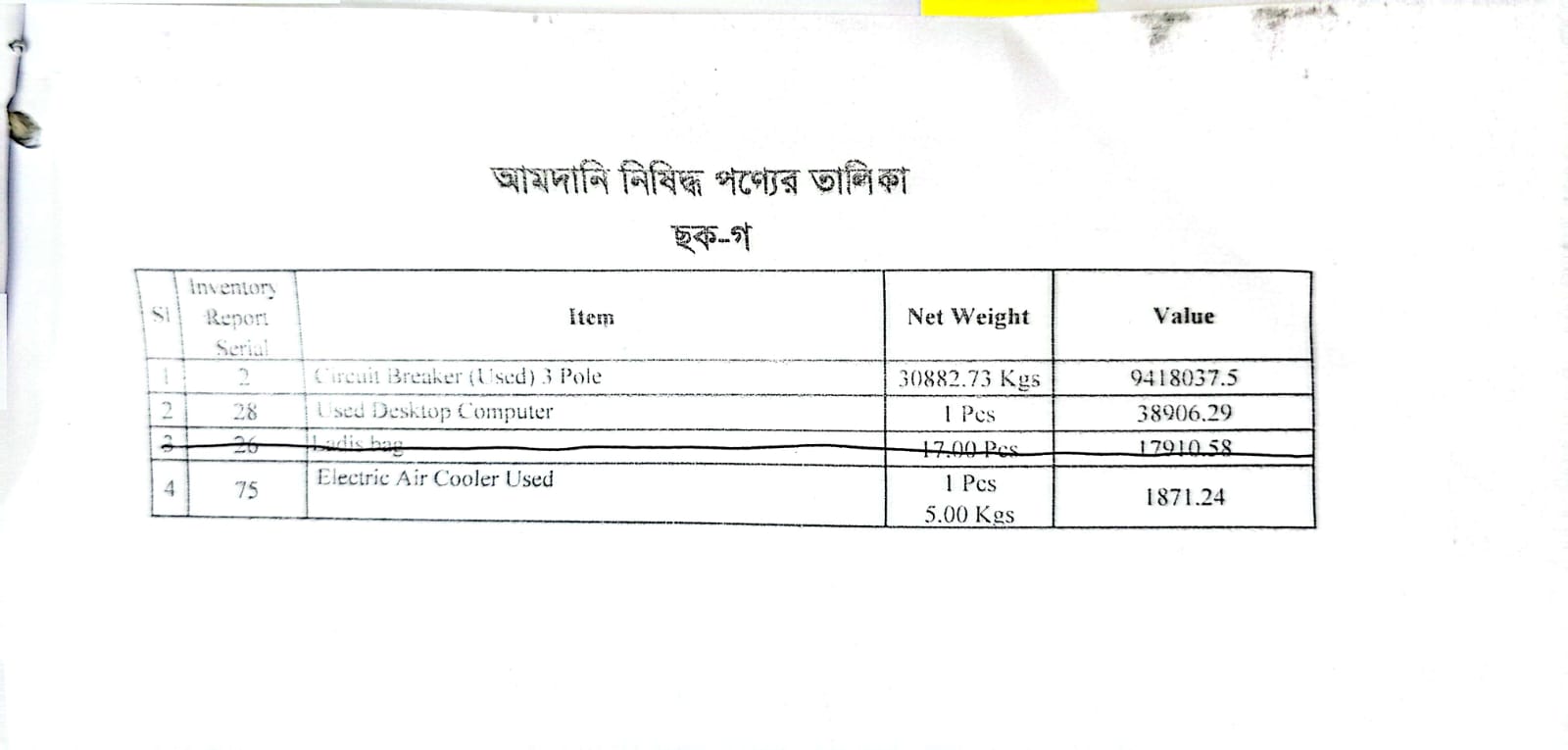 নিলামের পণ্য প্রদর্শনের তারিখ ২০/০৭/২০২৫ থেকে ৩১/০৭/২০২৫