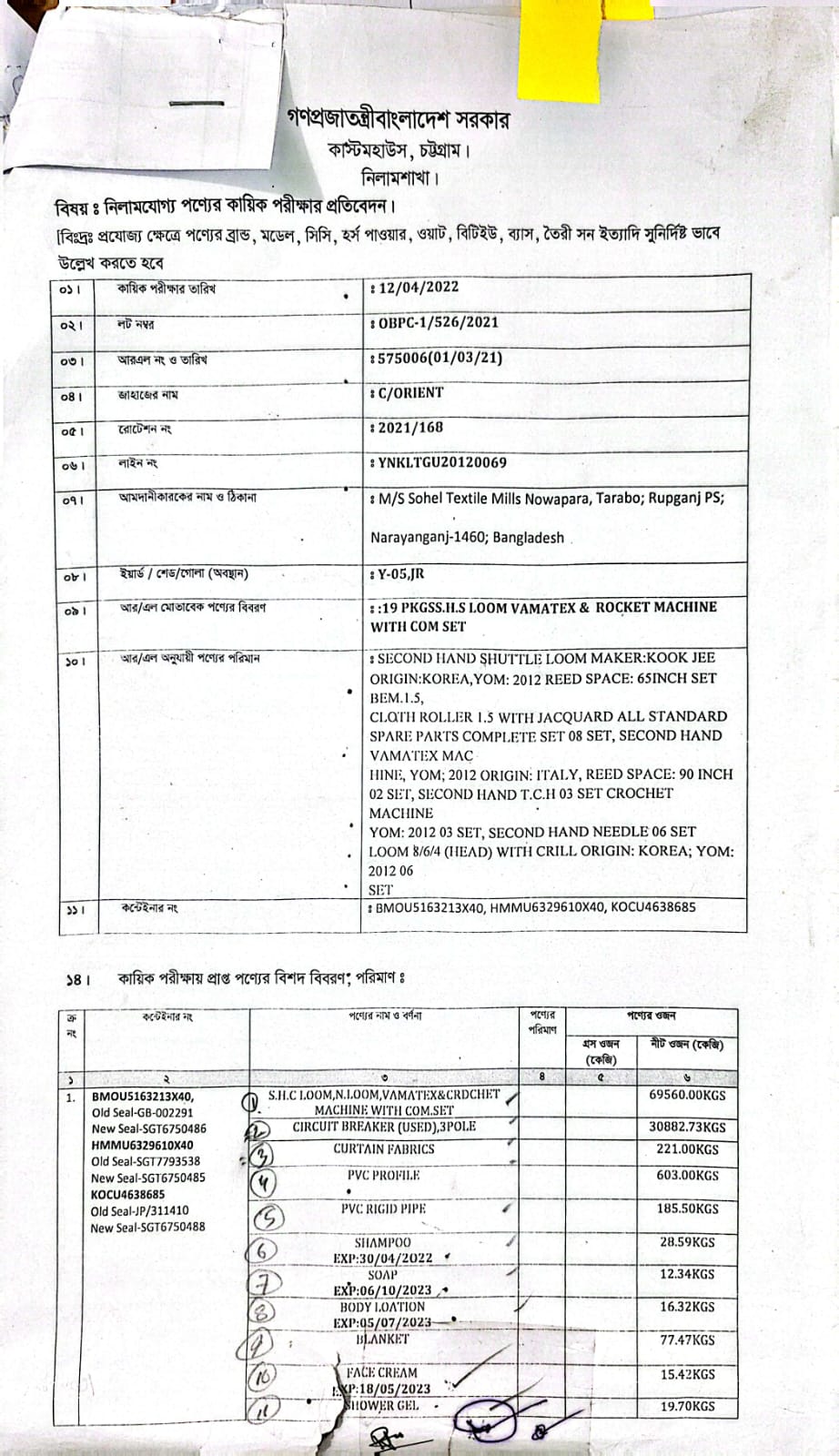 লটের শিরোনাম :S.H.C Loom N. Loom Vamatex & Crochet Machine , PVC Profile, Curtain Fabrics etc.(Previous Bid: 0 TK)