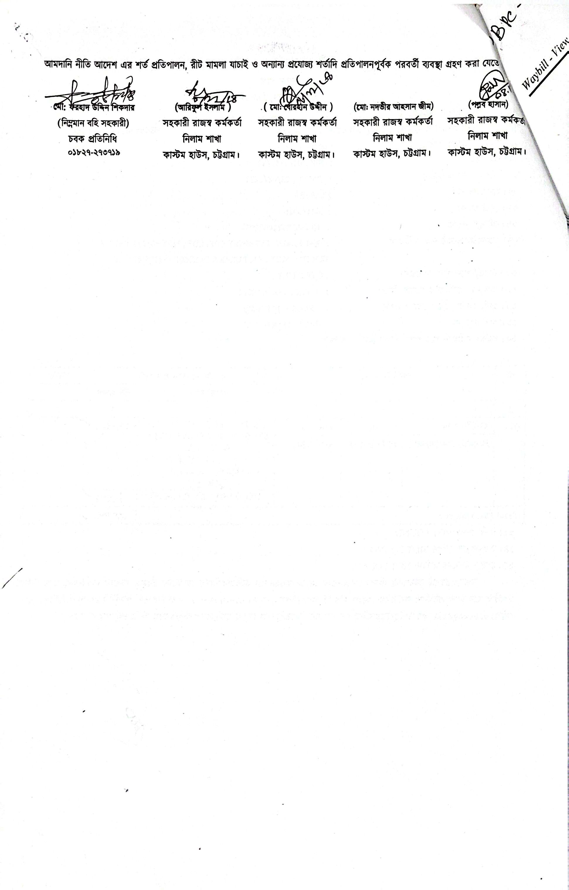 Terms & condition : নিলাম বিজ্ঞপ্তিতে উল্লিখিত সময়ের মধ্যে সেখানে সে অবস্থায় আছে, সে অবস্থায় সরেজমিন পণ্য পরিদর্শন করে নিলামে অংশগ্রহণ করার জন্য আগ্রহী নিলাম ক্রেতাগণকে অনুরোধ করা যাচ্ছে। দরপত্র উন্মুক্ত করার পর নিলামে অংশগ্রহণকারী/বিডার কর্তৃক পণ্য সংক্রান্ত কোন আপত্তি/আবেদন গ্রহণযোগ্য হবে না। আমদানি নীতি আদেশ ২০২১-২০২৪, বিদ্যমান অন্যান্য আইন ও বিধি-বিধানের প্রযোজ্য সকল শর্ত যথাযথ পরিপালনপূর্বক, প্রযোজ্য ক্ষেত্রে রাসায়নিক পরীক্ষার মাধ্যমে নিলামে বিক্রয়যোগ্য পণ্যের সঠিকতা যাচাই ও ব্যবহার উপযোগিতা থাকা সাপেক্ষে এবং খালাসকালে পণ্যের বর্ণনা এবং ওজন নিশ্চিত করে পণ্য ছাড়যোগ্য হবে। কোনরূপ কারণ দর্শানো ব্যতিরেকে কর্তৃপক্ষ যে কোন সময় ও পর্যায়ে যে কোন লট বা সকল লটের নিলাম আংশিক বা সম্পূর্ণ স্থগিত বা বাতিল করার অধিকার সংরক্ষণ করেন।