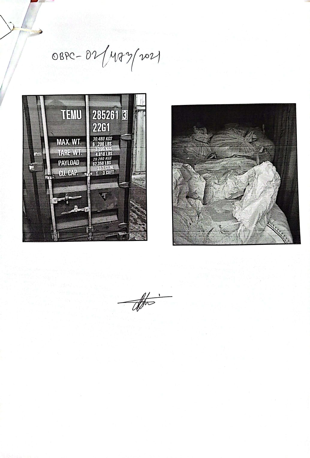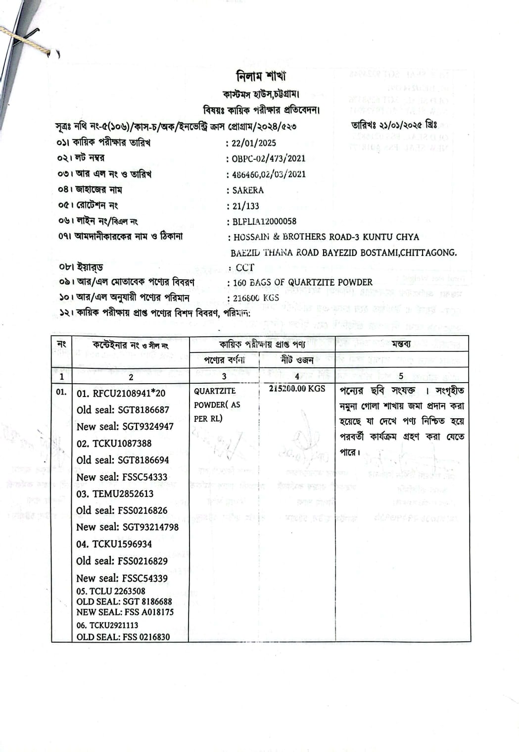 | কন্টেনার/জি আর নং |