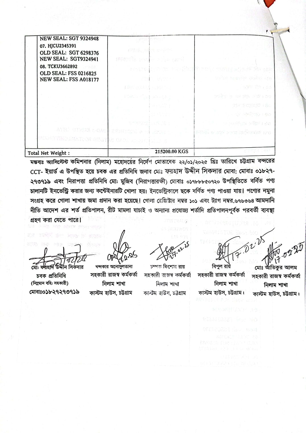 নিলাম সেল নং : ০৮/২০২৫/২০২৫/৩০১
