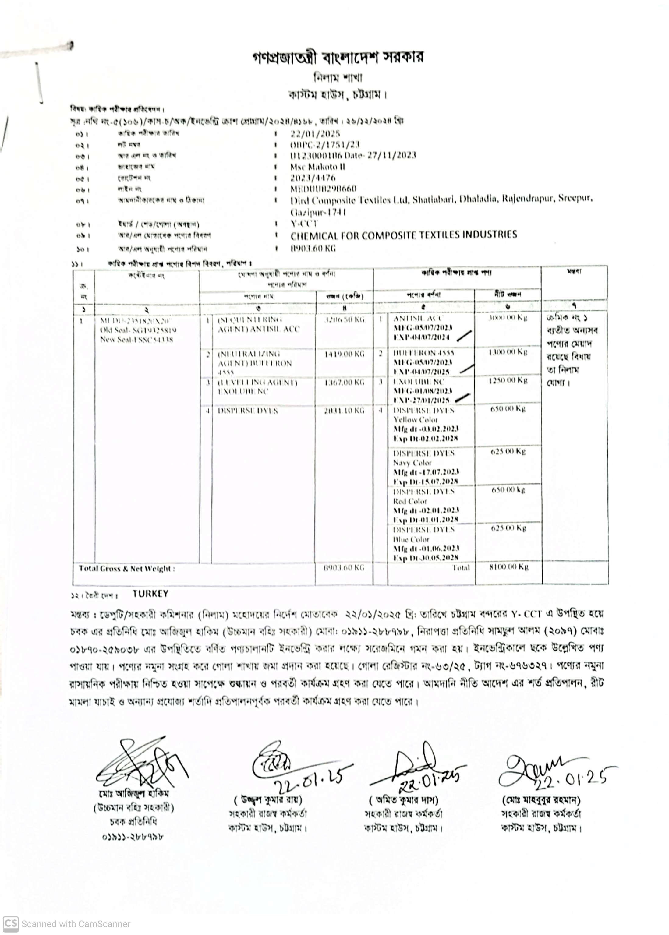 লটের শিরোনাম :Disperse Dyes & others(Previous Bid: 0 TK)