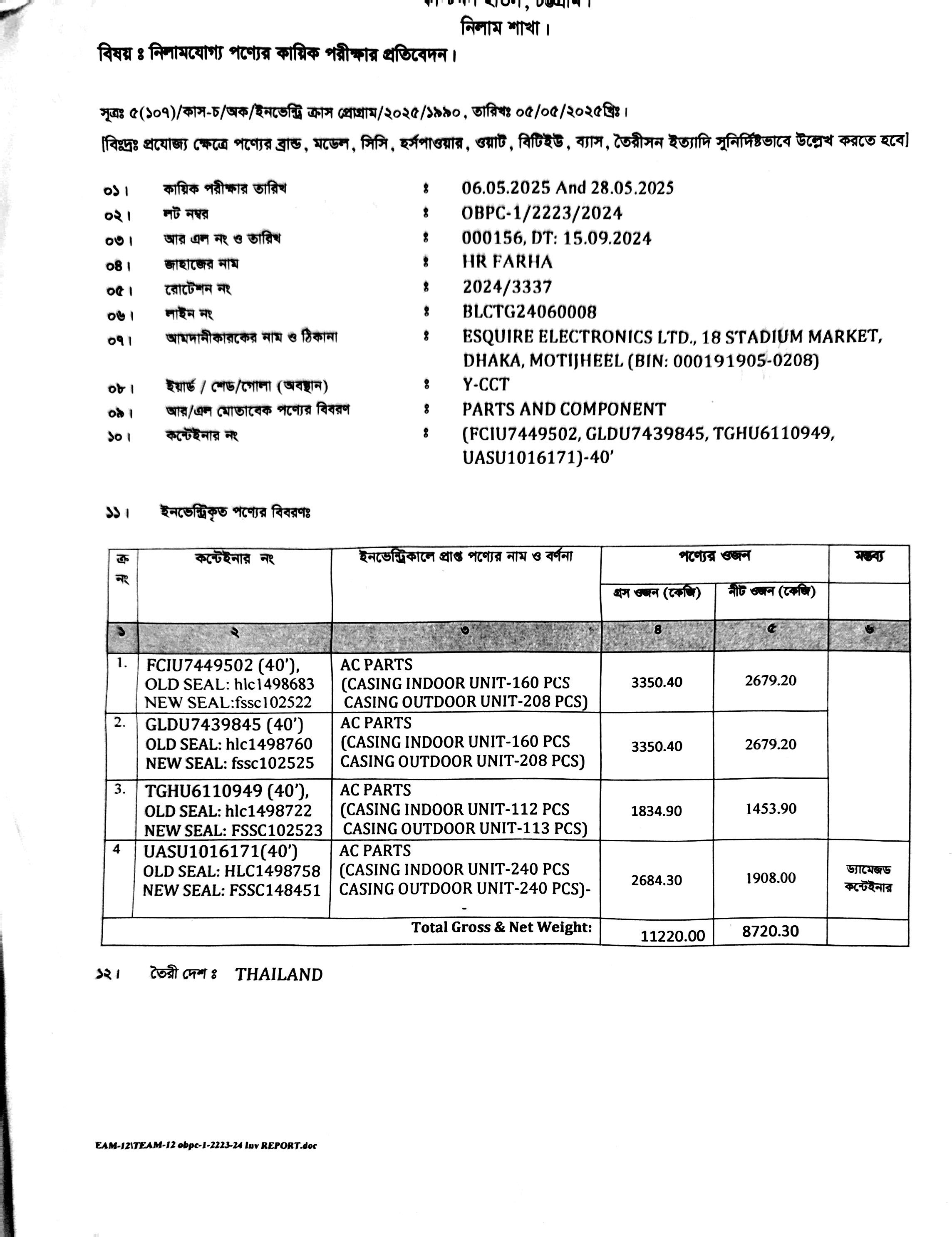 | কন্টেনার/জি আর নং |