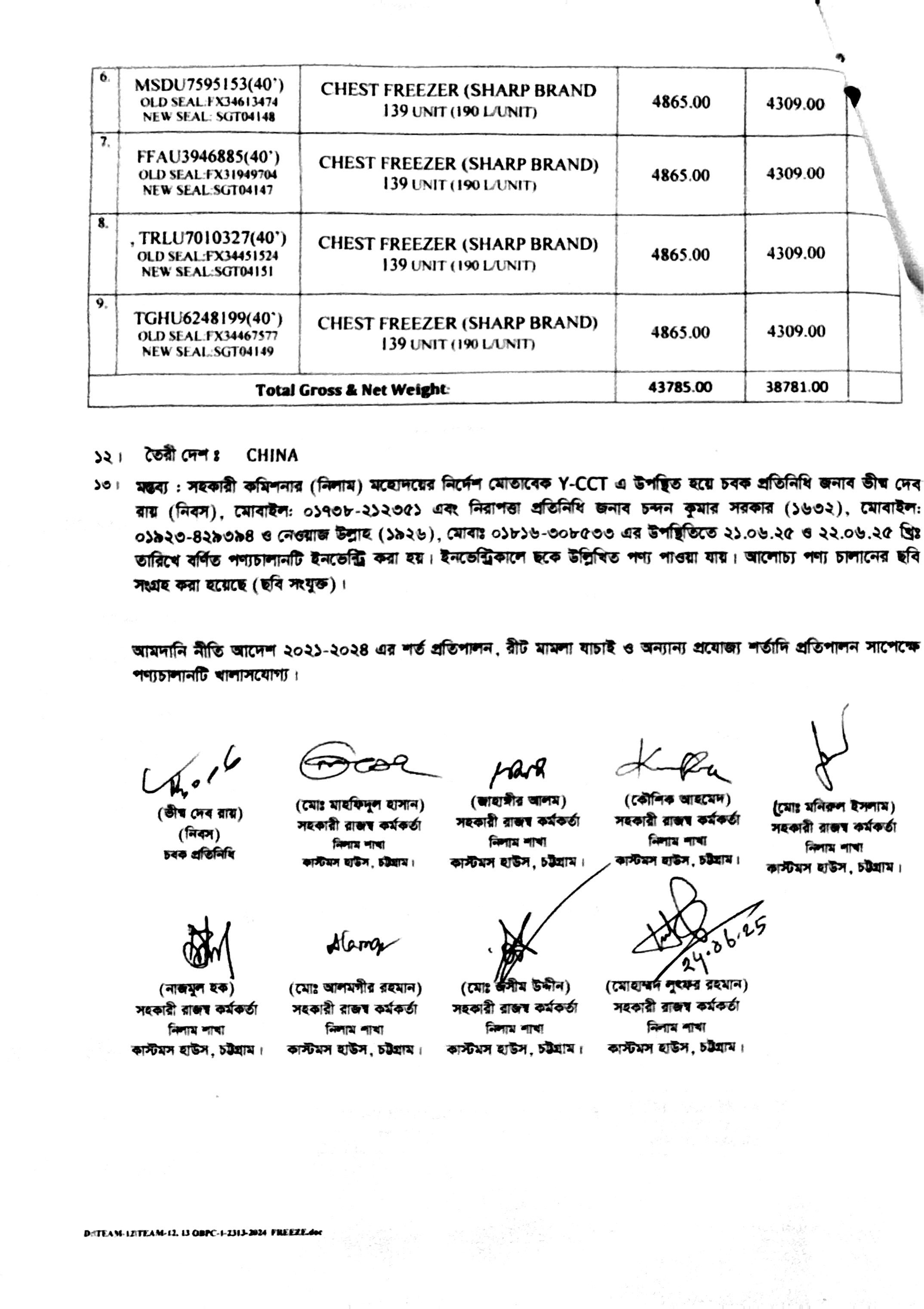 Terms & condition : আমদানি নীতি আদেশ এবং বিদ্যমান অন্যান্য আইন ও বিধি-বিধানের প্রযোজ্য সকল শর্ত পরিপালন সাপেক্ষে পণ্য ছাড়যোগ্য হবে। প্রযোজ্য ক্ষেত্রে রাসায়নিক পরীক্ষায় পণ্যের সঠিকতা ও ব্যবহার উপযোগিতা থাকা সাপেক্ষে পণ্য ছাড়যোগ্য হবে। যে সকল লটভুক্ত পণ্যচালানে মেয়াদ উত্তীর্ণ/ধ্বসংযোগ্য পণ্য অন্তর্ভুক্ত রয়েছে, সে সকল পণ্যচালানের ক্ষেত্রে মেয়াদ উত্তীর্ণ/ধ্বসংযোগ্য পণ্য ব্যতীত (প্রযোজ্য ক্ষেত্রে) কেবল মেয়াদযুক্ত/নিলামযোগ্য পণ্যসমূহ বিদ্যমান ও প্রযোজ্য সকল আইন ও বিধি-বিধানের প্রযোজ্য সকল শর্ত পরিপালন সাপেক্ষে পণ্য ছাড়যোগ্য হবে। কোনরূপ কারণ দর্শানো ব্যতিরেকে কর্তৃপক্ষ যে কোন সময় ও পর্যায়ে যে কোন লট বা সকল লটের নিলাম আংশিক বা সম্পূর্ণ স্থগিত বা বাতিল করার অধিকার সংরক্ষণ করেন।