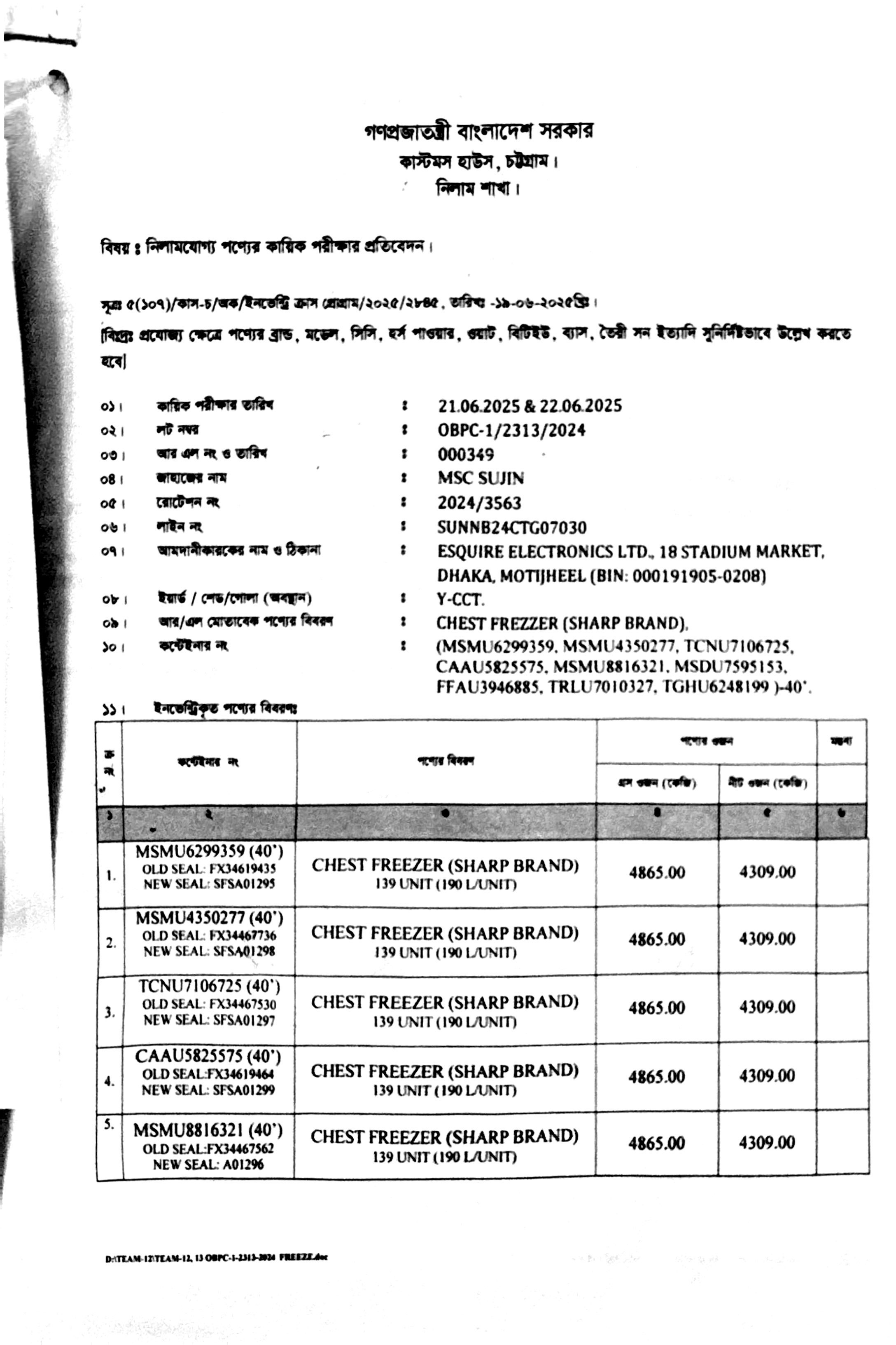 নিলাম সেল নং : ০৯/২০২৫/৩০১