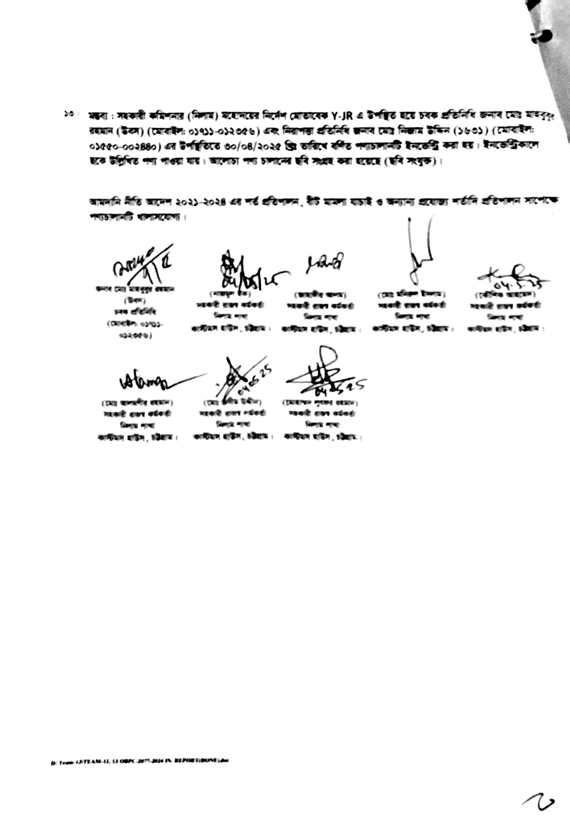 Terms & condition : আমদানি নীতি আদেশ এবং বিদ্যমান অন্যান্য আইন ও বিধি-বিধানের প্রযোজ্য সকল শর্ত পরিপালন সাপেক্ষে পণ্য ছাড়যোগ্য হবে। প্রযোজ্য ক্ষেত্রে রাসায়নিক পরীক্ষায় পণ্যের সঠিকতা ও ব্যবহার উপযোগিতা থাকা সাপেক্ষে পণ্য ছাড়যোগ্য হবে। যে সকল লটভুক্ত পণ্যচালানে মেয়াদ উত্তীর্ণ/ধ্বসংযোগ্য পণ্য অন্তর্ভুক্ত রয়েছে, সে সকল পণ্যচালানের ক্ষেত্রে মেয়াদ উত্তীর্ণ/ধ্বসংযোগ্য পণ্য ব্যতীত (প্রযোজ্য ক্ষেত্রে) কেবল মেয়াদযুক্ত/নিলামযোগ্য পণ্যসমূহ বিদ্যমান ও প্রযোজ্য সকল আইন ও বিধি-বিধানের প্রযোজ্য সকল শর্ত পরিপালন সাপেক্ষে পণ্য ছাড়যোগ্য হবে। কোনরূপ কারণ দর্শানো ব্যতিরেকে কর্তৃপক্ষ যে কোন সময় ও পর্যায়ে যে কোন লট বা সকল লটের নিলাম আংশিক বা সম্পূর্ণ স্থগিত বা বাতিল করার অধিকার সংরক্ষণ করেন।