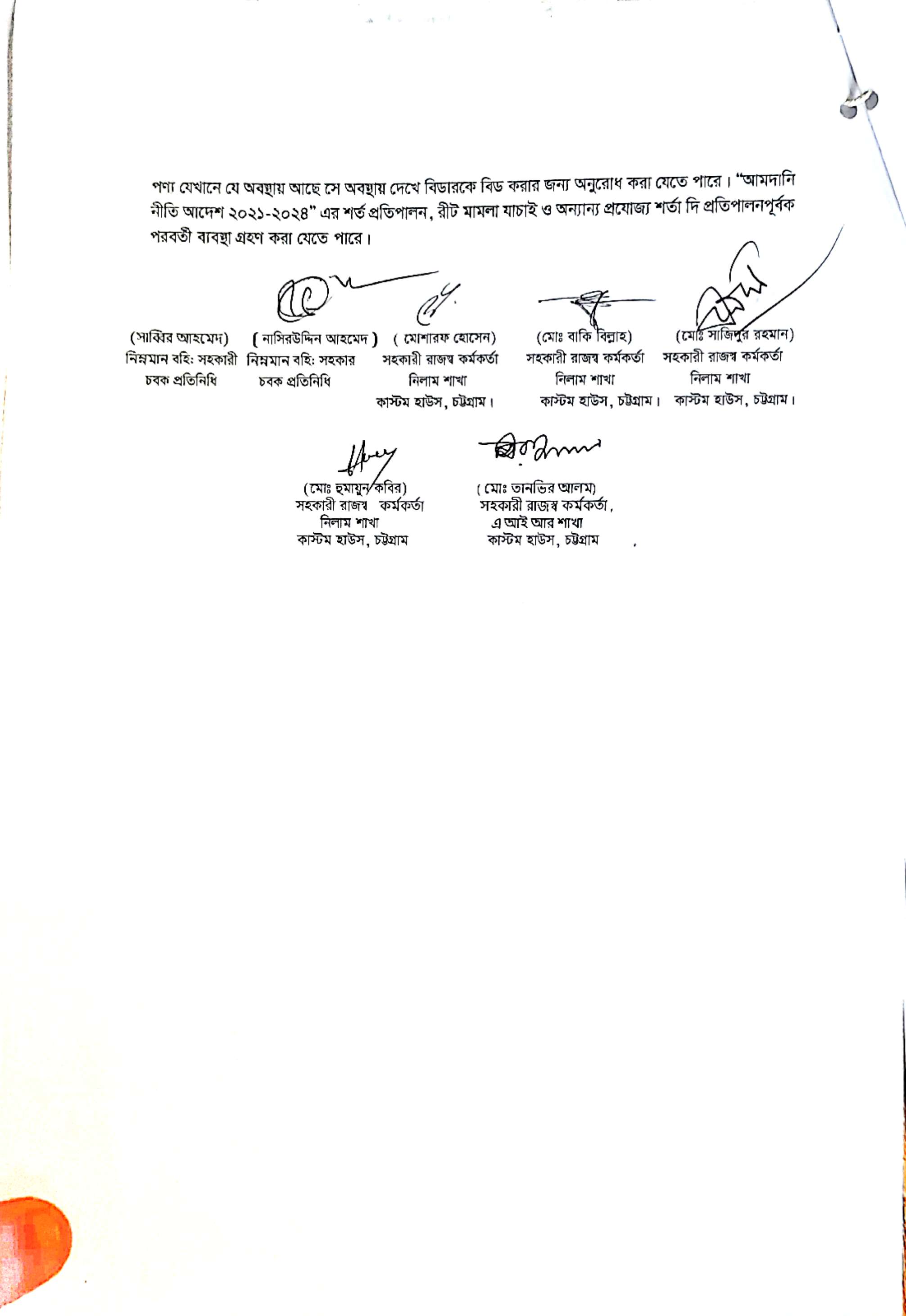 Terms & condition : আমদানি নীতি আদেশ এবং বিদ্যমান অন্যান্য আইন ও বিধি-বিধানের প্রযোজ্য সকল শর্ত পরিপালন এবং প্রযোজ্য ক্ষেত্রে রাসায়নিক পরীক্ষায় পণ্যের সঠিকতা ও ব্যবহার উপযোগিতা থাকা সাপেক্ষে পণ্য ছাড়যোগ্য হবে। যে সকল লটভুক্ত পণ্যচালানে মেয়াদ উত্তীর্ণ/ধ্বসংযোগ্য পণ্য অন্তর্ভুক্ত রয়েছে, সে সকল পণ্যচালানের ক্ষেত্রে মেয়াদ উত্তীর্ণ/ধ্বসংযোগ্য পণ্য ব্যতীত (প্রযোজ্য ক্ষেত্রে) কেবল মেয়াদযুক্ত/নিলামযোগ্য পণ্যসমূহ বিদ্যমান ও প্রযোজ্য সকল আইন ও বিধি-বিধানের প্রযোজ্য সকল শর্ত পরিপালন সাপেক্ষে পণ্য ছাড়যোগ্য হবে। সার্ভার জটিলতা এড়ানোর জন্য আগ্রহী নিলাম ক্রেতাগণকে সরেজমিন পণ্য দেখে নিলামের নির্ধারিত শেষ তারিখ ও সময়ের (৩০/০৯/২০২৫ খ্রি. তারিখ বিকাল ০৪.০০ টা) পূর্বেই বিশেষ ই-নিলামে অংশগ্রহণ করার জন্য অনুরোধ করা যাচ্ছে। কোনরূপ কারণ দর্শানো ব্যতিরেকে কর্তৃপক্ষ যে কোন সময় ও পর্যায়ে যে কোন লট বা সকল লটের নিলাম আংশিক বা সম্পূর্ণ স্থগিত বা বাতিল করার অধিকার সংরক্ষণ করেন।
