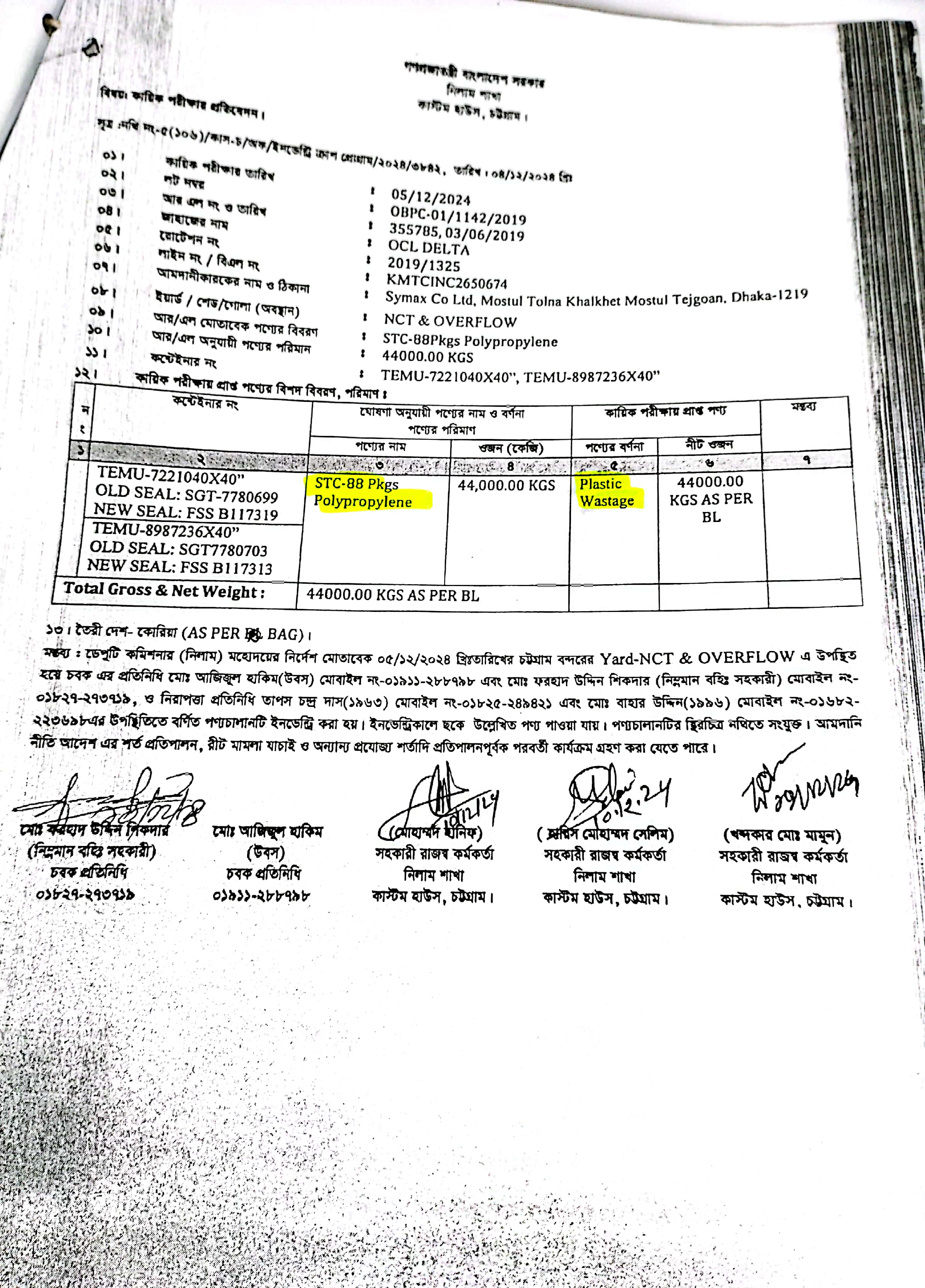 Terms & condition : আমদানি নীতি আদেশ এবং বিদ্যমান অন্যান্য আইন ও বিধি-বিধানের প্রযোজ্য সকল শর্ত পরিপালন এবং প্রযোজ্য ক্ষেত্রে রাসায়নিক পরীক্ষায় পণ্যের সঠিকতা ও ব্যবহার উপযোগিতা থাকা সাপেক্ষে পণ্য ছাড়যোগ্য হবে। যে সকল লটভুক্ত পণ্যচালানে মেয়াদ উত্তীর্ণ/ধ্বসংযোগ্য পণ্য অন্তর্ভুক্ত রয়েছে, সে সকল পণ্যচালানের ক্ষেত্রে মেয়াদ উত্তীর্ণ/ধ্বসংযোগ্য পণ্য ব্যতীত (প্রযোজ্য ক্ষেত্রে) কেবল মেয়াদযুক্ত/নিলামযোগ্য পণ্যসমূহ বিদ্যমান ও প্রযোজ্য সকল আইন ও বিধি-বিধানের প্রযোজ্য সকল শর্ত পরিপালন সাপেক্ষে পণ্য ছাড়যোগ্য হবে। সার্ভার জটিলতা এড়ানোর জন্য আগ্রহী নিলাম ক্রেতাগণকে সরেজমিন পণ্য দেখে নিলামের নির্ধারিত শেষ তারিখ ও সময়ের (৩০/০৯/২০২৫ খ্রি. তারিখ বিকাল ০৪.০০ টা) পূর্বেই বিশেষ ই-নিলামে অংশগ্রহণ করার জন্য অনুরোধ করা যাচ্ছে। কোনরূপ কারণ দর্শানো ব্যতিরেকে কর্তৃপক্ষ যে কোন সময় ও পর্যায়ে যে কোন লট বা সকল লটের নিলাম আংশিক বা সম্পূর্ণ স্থগিত বা বাতিল করার অধিকার সংরক্ষণ করেন।