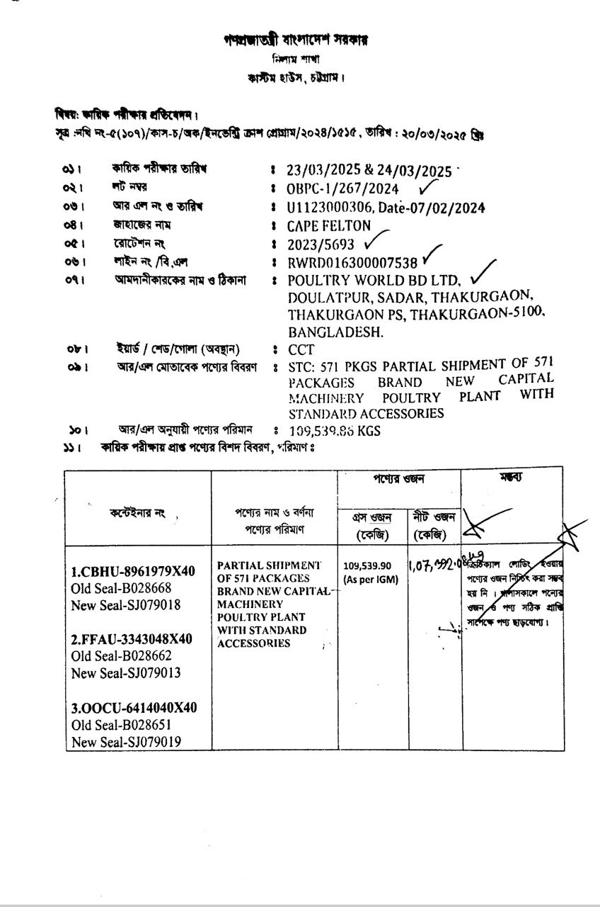 লটের শিরোনাম :Partial Shipment of 571 Packges Brand New Capital Machinery Poultry Plant With Standard Accessories(Previous Bid: 0 TK)