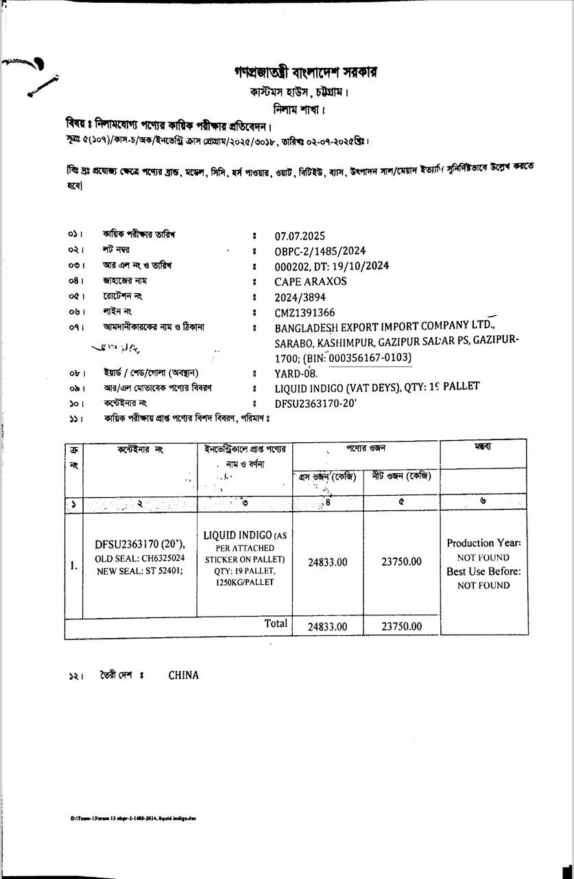 লটের শিরোনাম :Liquid Indigo (Vat Dyes)(Previous Bid: 0 TK)