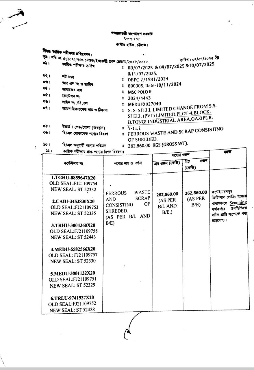 লটের শিরোনাম :Ferrous Waste And Scrap Consisting of Shreded(Previous Bid: 0 TK)