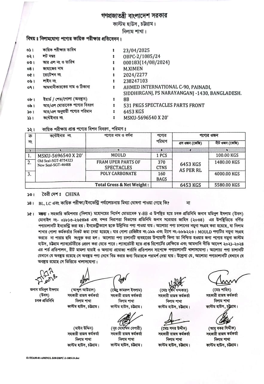 নিলামের পণ্য প্রদর্শনের তারিখ ০২/১১/২০২৫ থেকে ১৩/১১/২০২৫