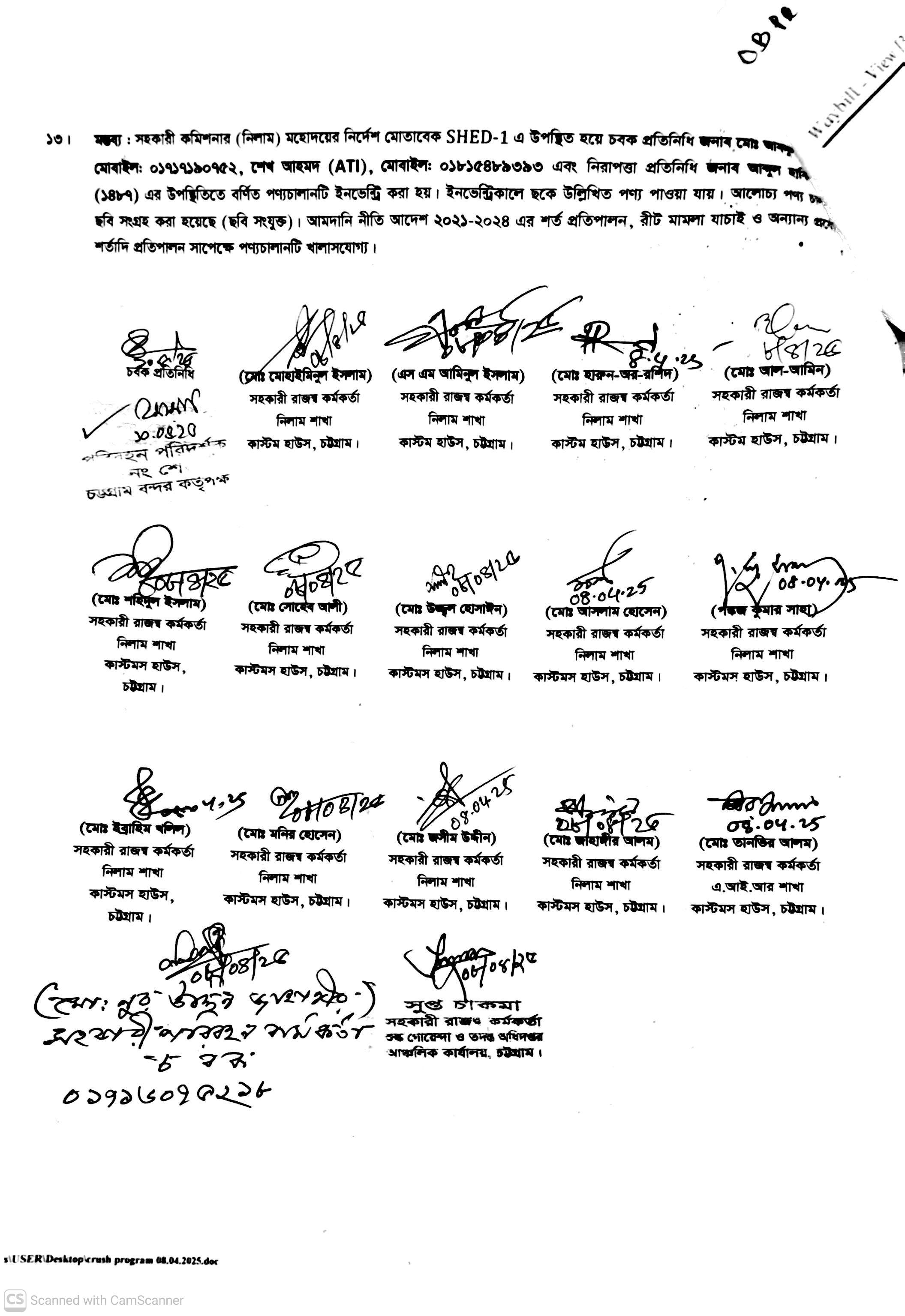 Terms & condition : বাণিজ্য মন্ত্রণালয়ের পূর্বানুমতি/অনাপত্তি পত্রে উল্লিখিত সকল শর্ত, আমদানি নীতি আদেশ ২০২১-২০২৪ এর প্রযোজ্য শর্ত পরিপালন এবং বিদ্যমান অন্যান্য আইন ও বিধি-বিধানের প্রযোজ্য সকল শর্তাদি পরিপালনপূর্বক নিলামকৃত পণ্য ছাড়যোগ্য হবে। পণ্যের ব্যবহার উপযোগিতা থাকা সাপেক্ষে পণ্য ছাড়যোগ্য হবে।