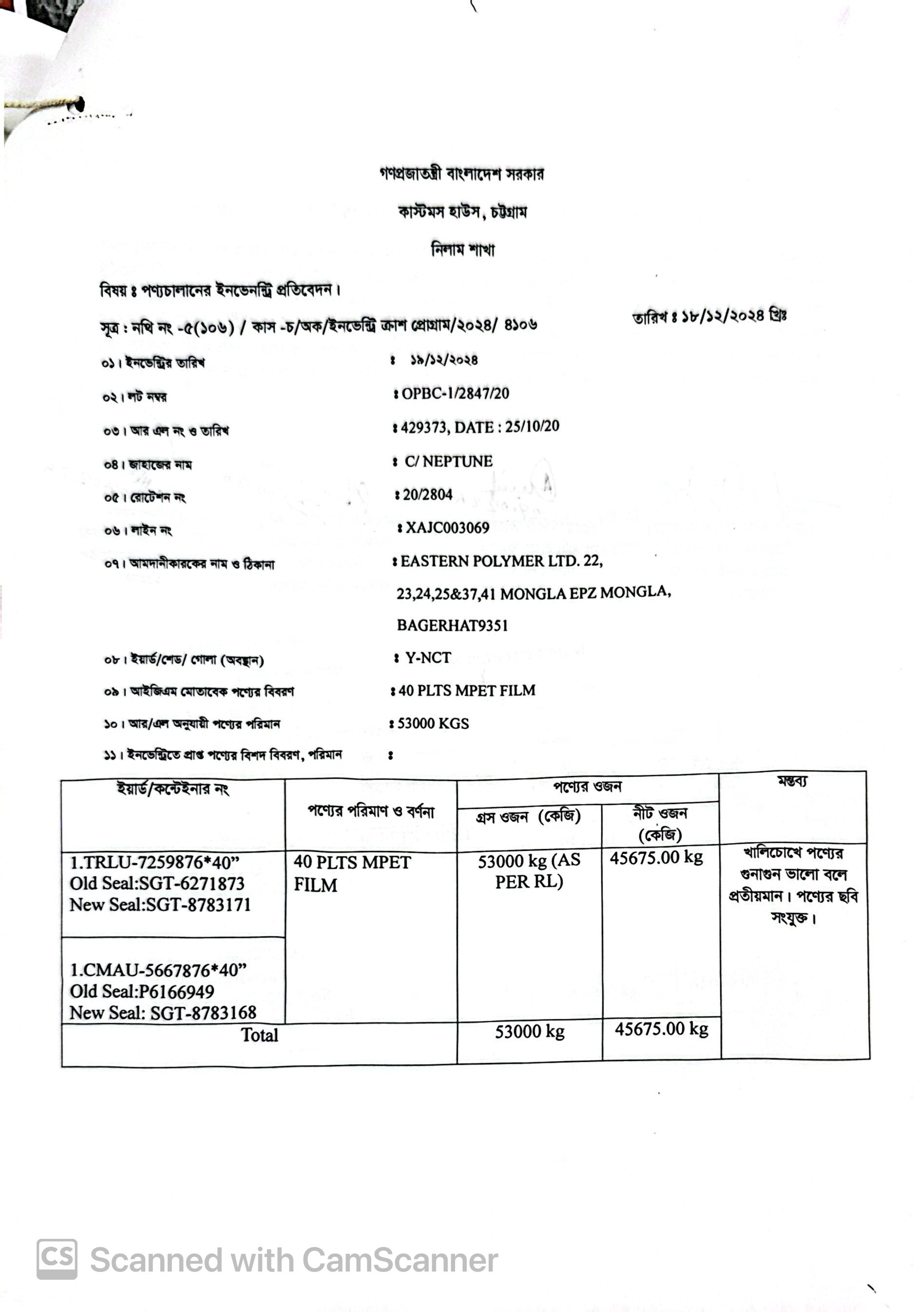 লটের শিরোনাম :40 Plts MPET Film(Previous Bid: 0 TK)