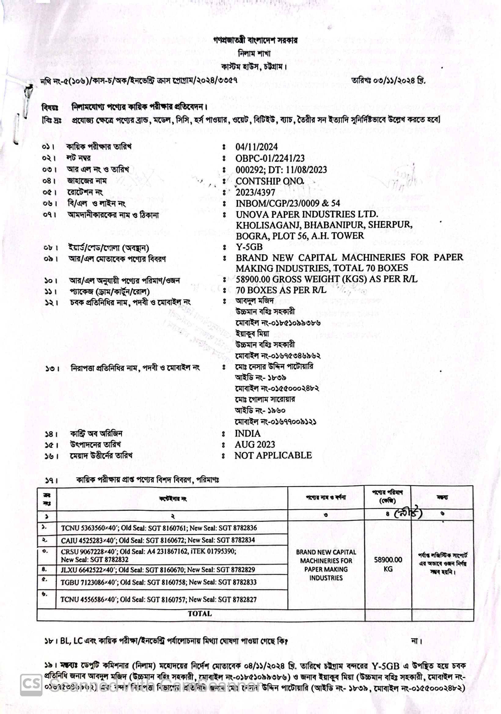 লটের শিরোনাম :Brand New Capital Machineries for Paper Making Industries(Previous Bid: 0 TK)