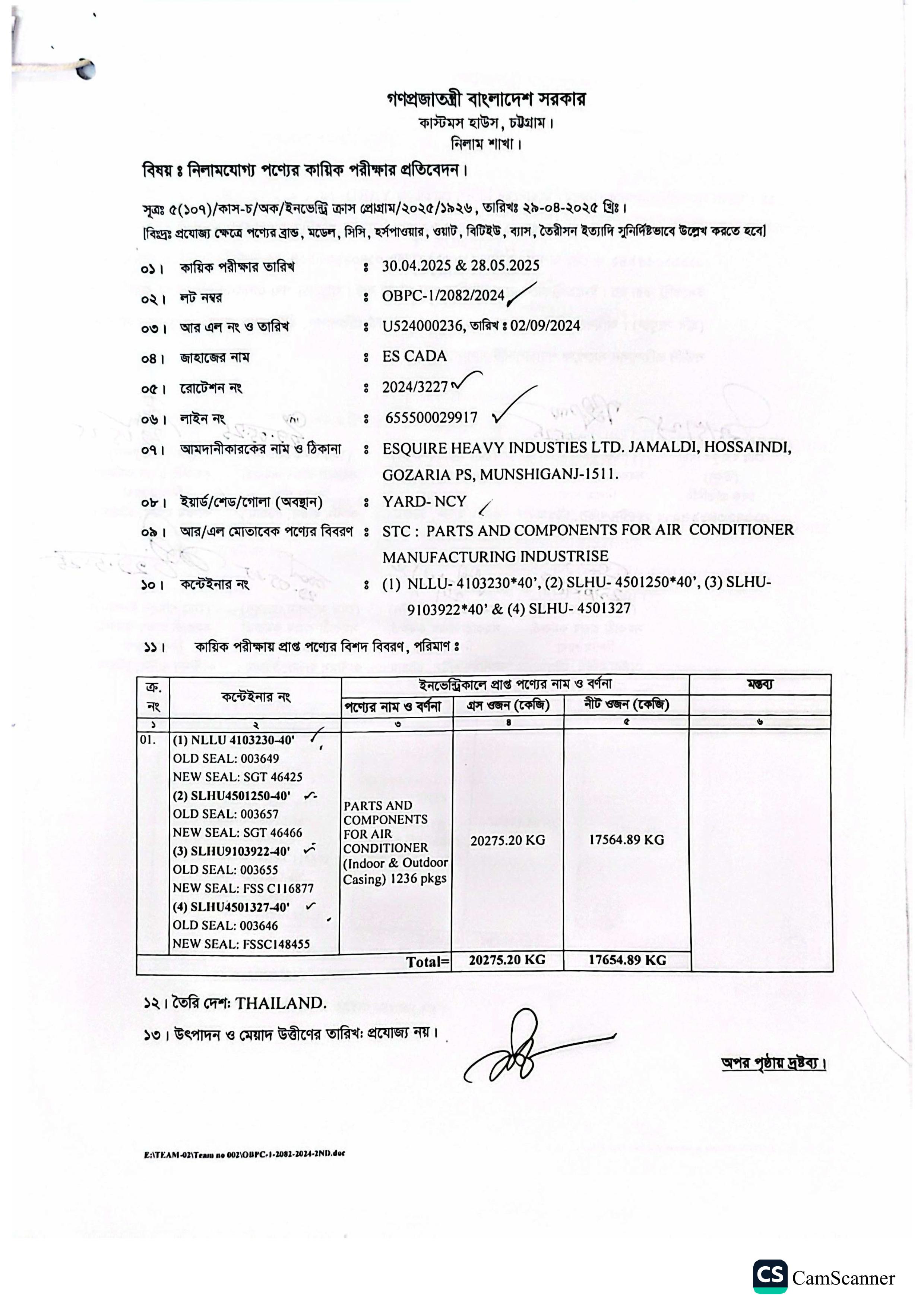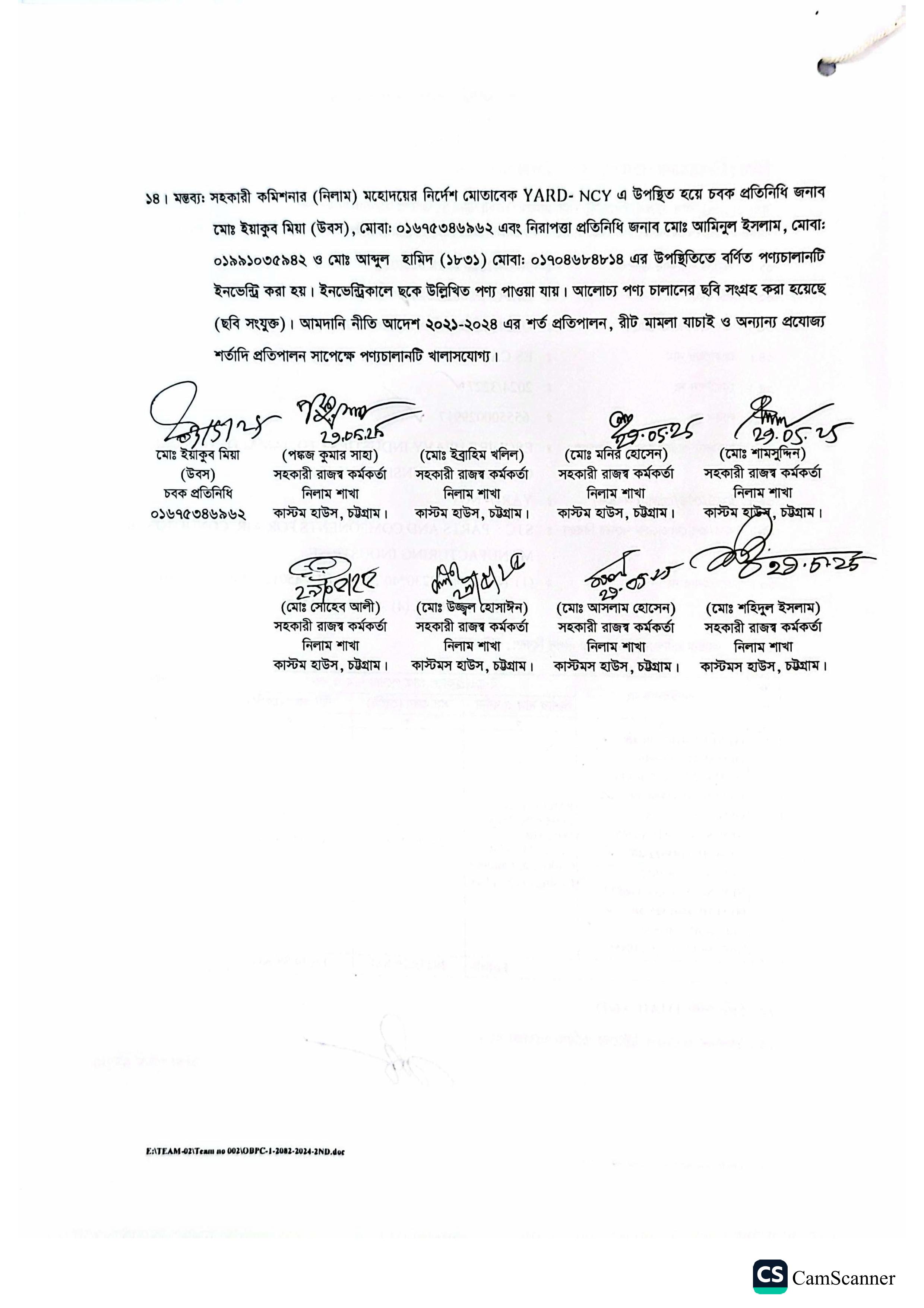 Terms & condition : আমদানি নীতি আদেশ এবং বিদ্যমান অন্যান্য আইন ও বিধি-বিধানের প্রযোজ্য সকল শর্ত পরিপালন এবং প্রযোজ্য ক্ষেত্রে রাসায়নিক পরীক্ষায় পণ্যের সঠিকতা ও ব্যবহার উপযোগিতা থাকা সাপেক্ষে খালাসকালে পণ্যের বর্ণনা এবং ওজন নিশ্চিত করে পণ্য ছাড়যোগ্য হবে। কোন লটভুক্ত পণ্যচালানে মেয়াদ উত্তীর্ণ/ধ্বসংযোগ্য পণ্য অন্তর্ভুক্ত থাকলে, উক্ত পণ্যচালানের ক্ষেত্রে মেয়াদ উত্তীর্ণ/ধ্বসংযোগ্য পণ্য ব্যতীত (প্রযোজ্য ক্ষেত্রে) কেবল মেয়াদযুক্ত/নিলামযোগ্য পণ্যসমূহ বিদ্যমান ও প্রযোজ্য আইন ও বিধি-বিধানের প্রযোজ্য সকল শর্ত পরিপালন সাপেক্ষে পণ্য ছাড়যোগ্য হবে। সার্ভার জটিলতা এড়ানোর জন্য আগ্রহী নিলাম ক্রেতাগণকে সরেজমিন পণ্য দেখে নিলামের নির্ধারিত শেষ তারিখ ও সময়ের পূর্বেই ই-নিলামে অংশগ্রহণ করার জন্য অনুরোধ করা যাচ্ছে। কোনরূপ কারণ দর্শানো ব্যতিরেকে কর্তৃপক্ষ যে কোন সময় ও পর্যায়ে যে কোন লট বা সকল লটের নিলাম আংশিক বা সম্পূর্ণ স্থগিত বা বাতিলের অধিকার সংরক্ষণ করেন।