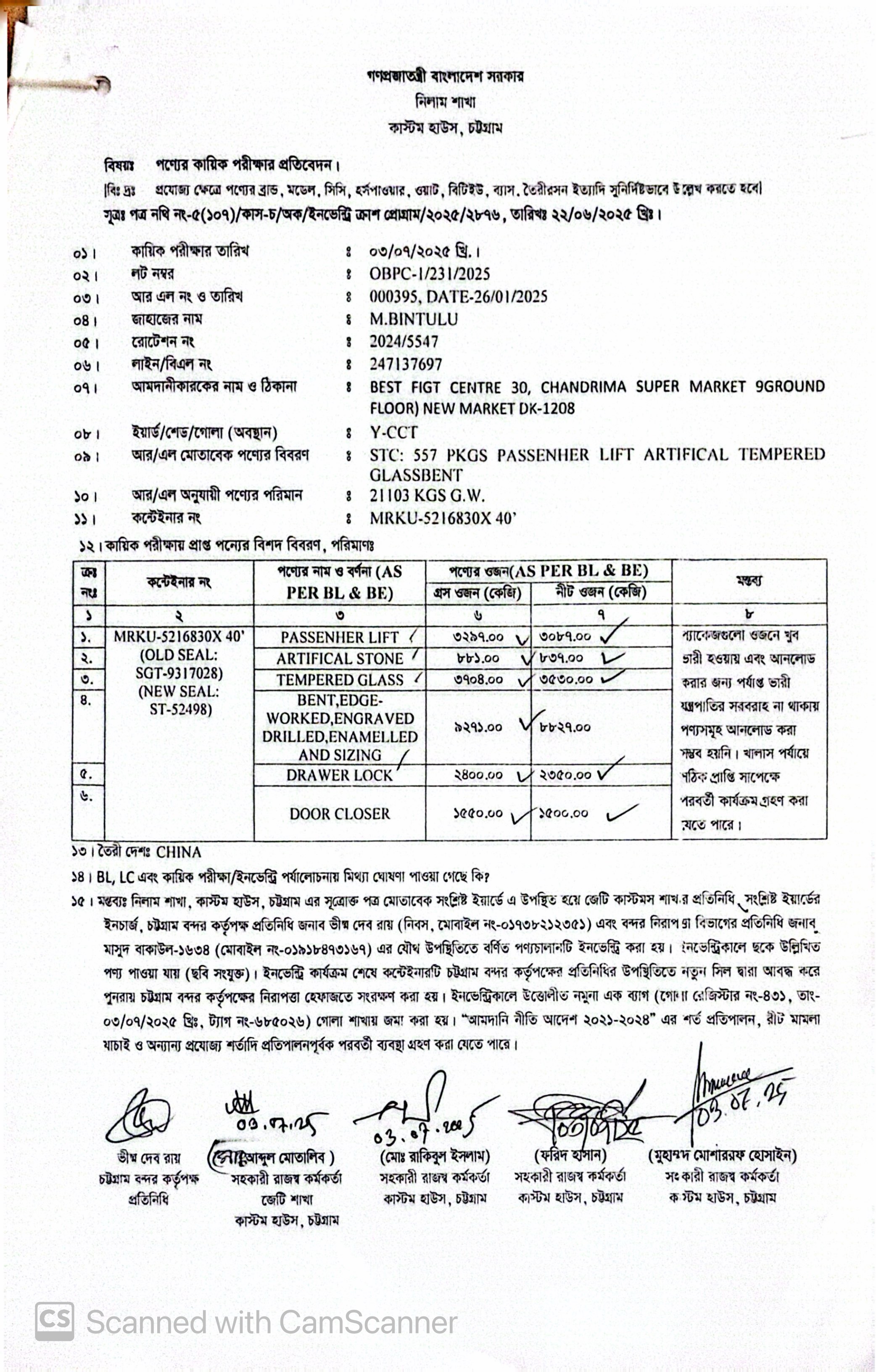 Terms & condition : আমদানি নীতি আদেশ এবং বিদ্যমান অন্যান্য আইন ও বিধি-বিধানের প্রযোজ্য সকল শর্ত পরিপালন এবং প্রযোজ্য ক্ষেত্রে রাসায়নিক পরীক্ষায় পণ্যের সঠিকতা ও ব্যবহার উপযোগিতা থাকা সাপেক্ষে খালাসকালে পণ্যের বর্ণনা এবং ওজন নিশ্চিত করে পণ্য ছাড়যোগ্য হবে। কোন লটভুক্ত পণ্যচালানে মেয়াদ উত্তীর্ণ/ধ্বসংযোগ্য পণ্য অন্তর্ভুক্ত থাকলে, উক্ত পণ্যচালানের ক্ষেত্রে মেয়াদ উত্তীর্ণ/ধ্বসংযোগ্য পণ্য ব্যতীত (প্রযোজ্য ক্ষেত্রে) কেবল মেয়াদযুক্ত/নিলামযোগ্য পণ্যসমূহ বিদ্যমান ও প্রযোজ্য আইন ও বিধি-বিধানের প্রযোজ্য সকল শর্ত পরিপালন সাপেক্ষে পণ্য ছাড়যোগ্য হবে। সার্ভার জটিলতা এড়ানোর জন্য আগ্রহী নিলাম ক্রেতাগণকে সরেজমিন পণ্য দেখে নিলামের নির্ধারিত তারিখ ও সময় শেষ হওয়ার পূর্বেই ই-নিলামে অংশগ্রহণ করার জন্য অনুরোধ করা যাচ্ছে। কোনরূপ কারণ দর্শানো ব্যতিরেকে কর্তৃপক্ষ যে কোন সময় ও পর্যায়ে যে কোন লট বা সকল লটের নিলাম আংশিক বা সম্পূর্ণ স্থগিত বা বাতিলের অধিকার সংরক্ষণ করেন।