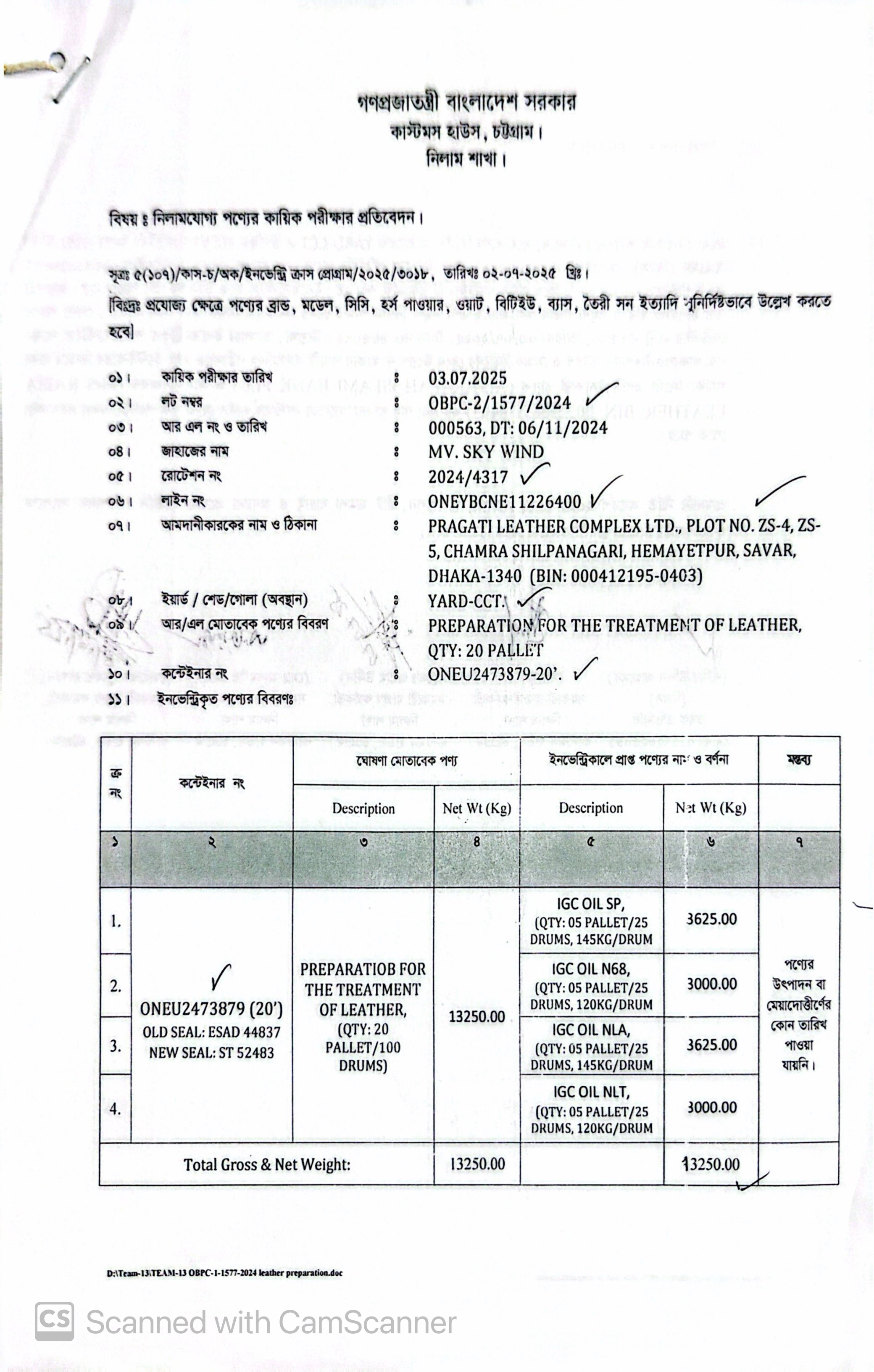 লটের শিরোনাম :PRE.FOR THE TREATMNENT OF LEATHERS(Previous Bid: 0 TK)