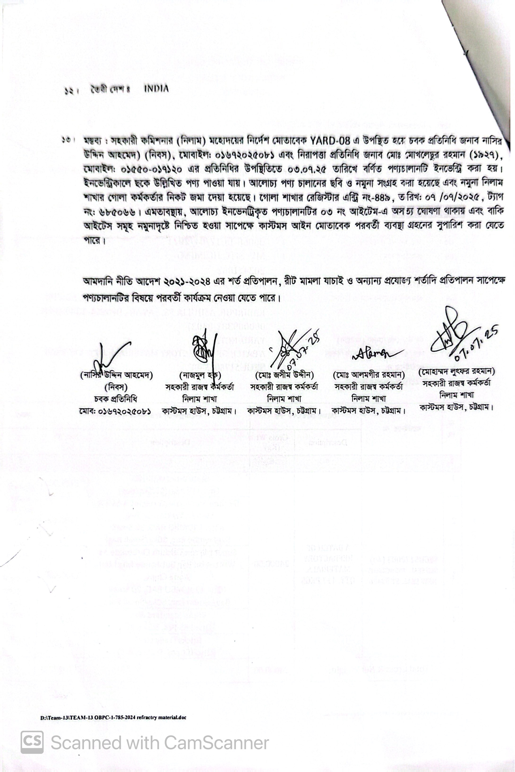 Terms & condition : আমদানি নীতি আদেশ এবং বিদ্যমান অন্যান্য আইন ও বিধি-বিধানের প্রযোজ্য সকল শর্ত পরিপালন এবং প্রযোজ্য ক্ষেত্রে রাসায়নিক পরীক্ষায় পণ্যের সঠিকতা ও ব্যবহার উপযোগিতা থাকা সাপেক্ষে খালাসকালে পণ্যের বর্ণনা এবং ওজন নিশ্চিত করে পণ্য ছাড়যোগ্য হবে। কোন লটভুক্ত পণ্যচালানে মেয়াদ উত্তীর্ণ/ধ্বসংযোগ্য পণ্য অন্তর্ভুক্ত থাকলে, উক্ত পণ্যচালানের ক্ষেত্রে মেয়াদ উত্তীর্ণ/ধ্বসংযোগ্য পণ্য ব্যতীত (প্রযোজ্য ক্ষেত্রে) কেবল মেয়াদযুক্ত/নিলামযোগ্য পণ্যসমূহ বিদ্যমান ও প্রযোজ্য আইন ও বিধি-বিধানের প্রযোজ্য সকল শর্ত পরিপালন সাপেক্ষে পণ্য ছাড়যোগ্য হবে। সার্ভার জটিলতা এড়ানোর জন্য আগ্রহী নিলাম ক্রেতাগণকে সরেজমিন পণ্য দেখে নিলামের নির্ধারিত তারিখ ও সময় শেষ হওয়ার পূর্বেই ই-নিলামে অংশগ্রহণ করার জন্য অনুরোধ করা যাচ্ছে। কোনরূপ কারণ দর্শানো ব্যতিরেকে কর্তৃপক্ষ যে কোন সময় ও পর্যায়ে যে কোন লট বা সকল লটের নিলাম আংশিক বা সম্পূর্ণ স্থগিত বা বাতিলের অধিকার সংরক্ষণ করেন।