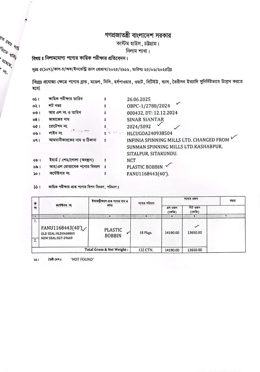 নিলামের পণ্য প্রদর্শনের তারিখ ০৮/০৩/২০২৬ থেকে ০২/০৪/২০২৬