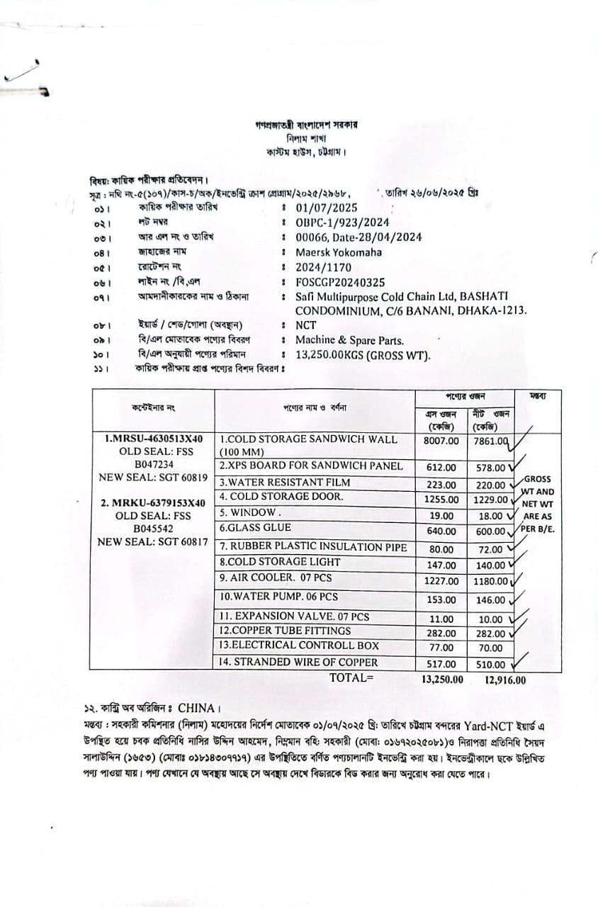 লটের শিরোনাম :1. Cold Storage Sandwich Wall (100 MM), 2. Xps Board For Sandwich Panel, 3. Water Resistant Film, 4. Cold Storage Door, 5. Window, 6. Glass Glue, 7. Rubber Plastic Insulation Pipe, 8. Cold Storage Lig(Previous Bid: 0 TK)