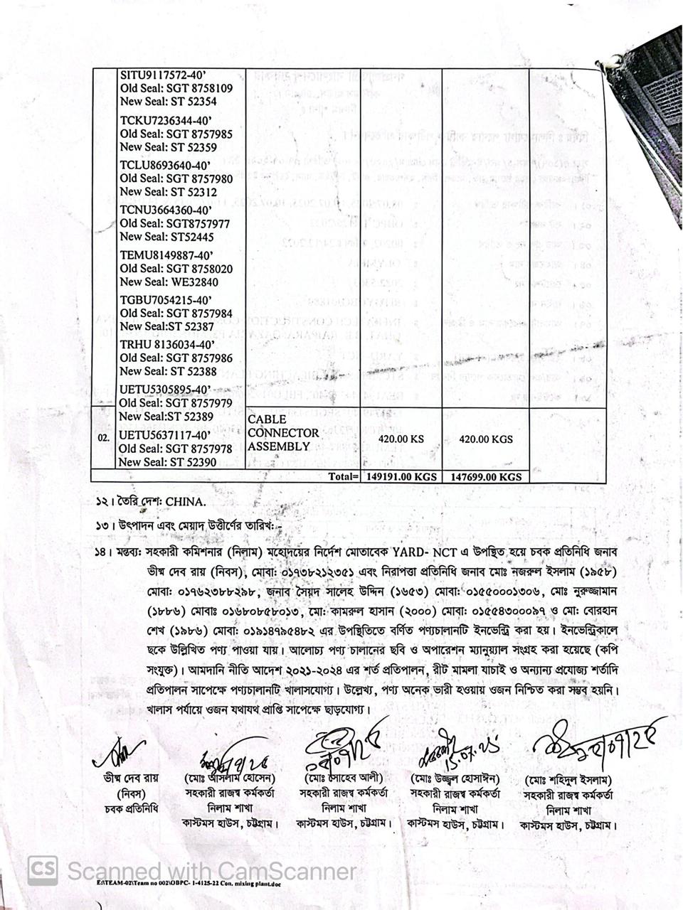 | কন্টেনার/জি আর নং |